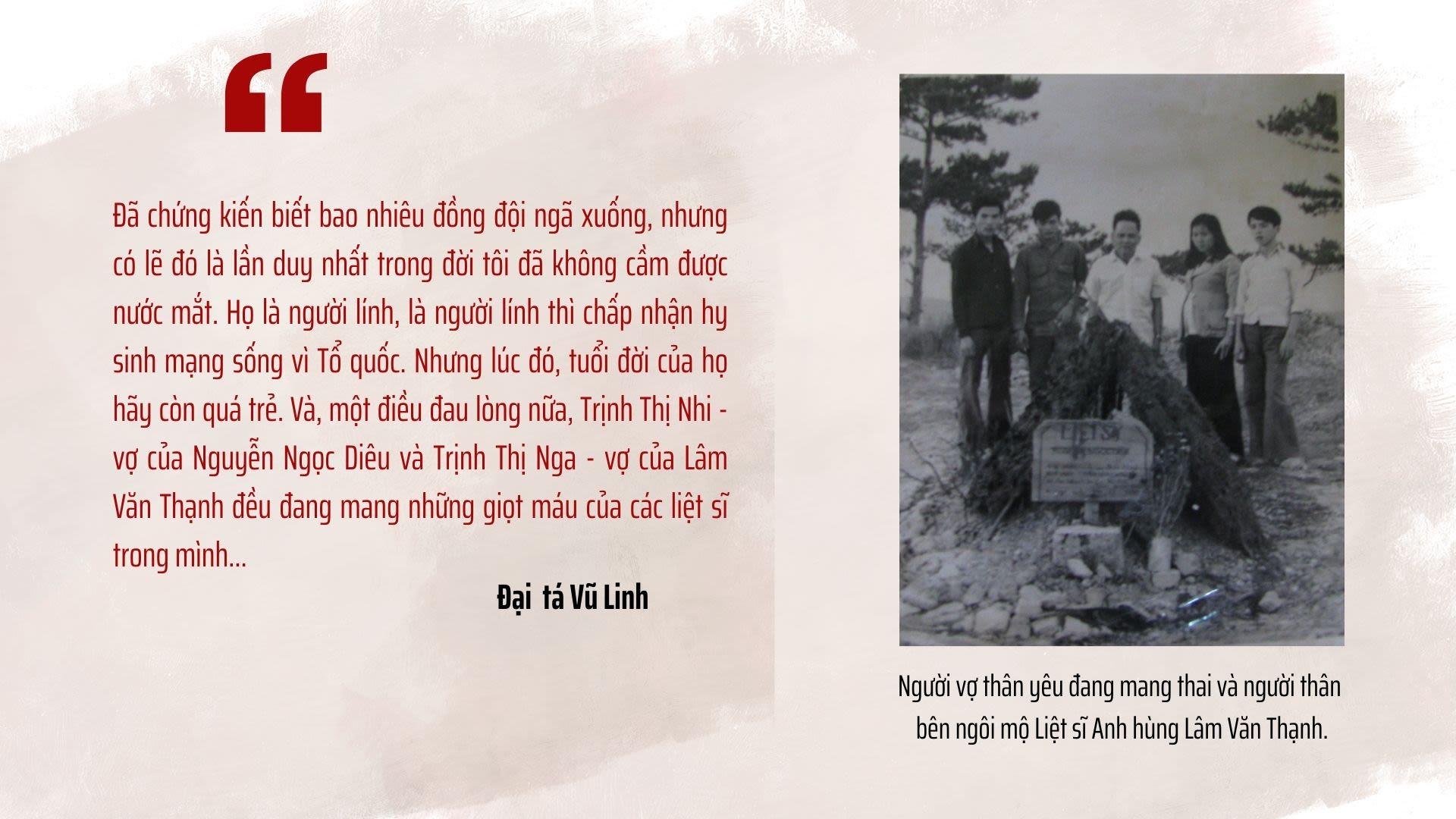 Đại tá Vũ Linh trầm ngâm: “Đã chứng kiến biết bao nhiêu đồng đội ngã xuống, nhưng có lẽ đó là lần duy nhất trong đời tôi đã không cầm được nước mắt. Họ là người lính, là người lính thì chấp nhận hy sinh mạng sống vì Tổ quốc. Nhưng lúc đó, tuổi đời của họ hãy còn quá trẻ. Và, một điều đau lòng nữa, Trịnh Thị Nhi - vợ của Nguyễn Ngọc Diêu và Trịnh Thị Nga - vợ của Lâm Văn Thạnh đều đang mang những giọt máu của các liệt sĩ trong mình…”. Điều trùng hợp ngẫu nhiên, 31 năm sau, con gái của anh Diêu là Nguyễn Trịnh Hồng Nhung, và con gái của anh Thạnh là Lâm Quỳnh Hương, hiện là hai trung úy trẻ của lực lượng công an Lâm Đồng…