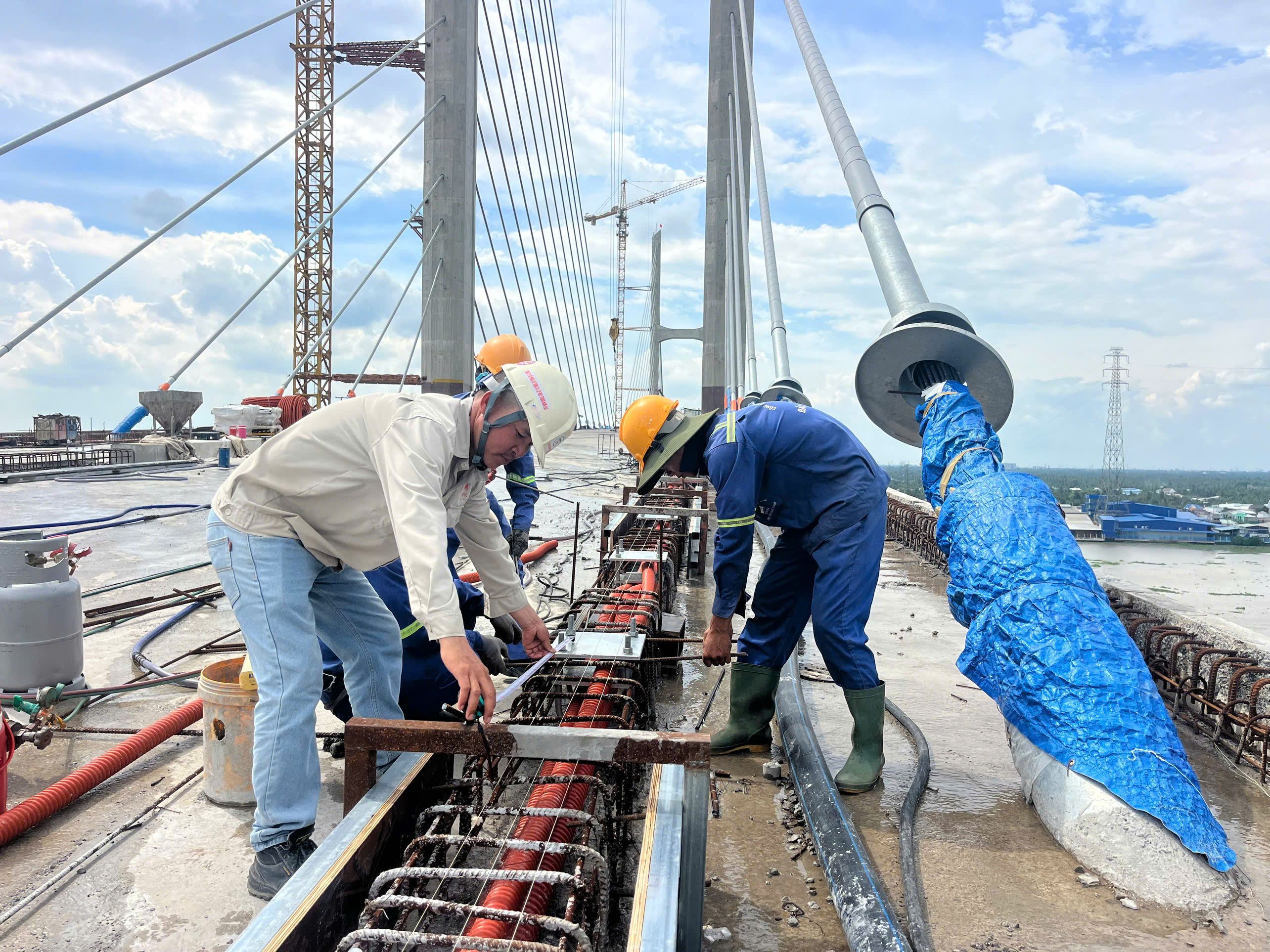 Những ngày “ăn nằm” trên công trường, tôi rất thấm cảnh buốt lạnh của mùa mưa triền miên, rồi lại đến cái nóng oi bức vào mùa khô ở miền Tây. Mùa khô năm 2023, trước thời điểm hợp long cầu Mỹ Thuận 2 vài tháng, thời tiết nắng nóng có lúc đạt ngưỡng gần 40 độ C; vậy mà ai cũng cười vui, họ mong chờ “mẻ bê tông’ cuối cùng được hoàn thiện, cầu Mỹ Thuận 2 chính thức liền mạch.