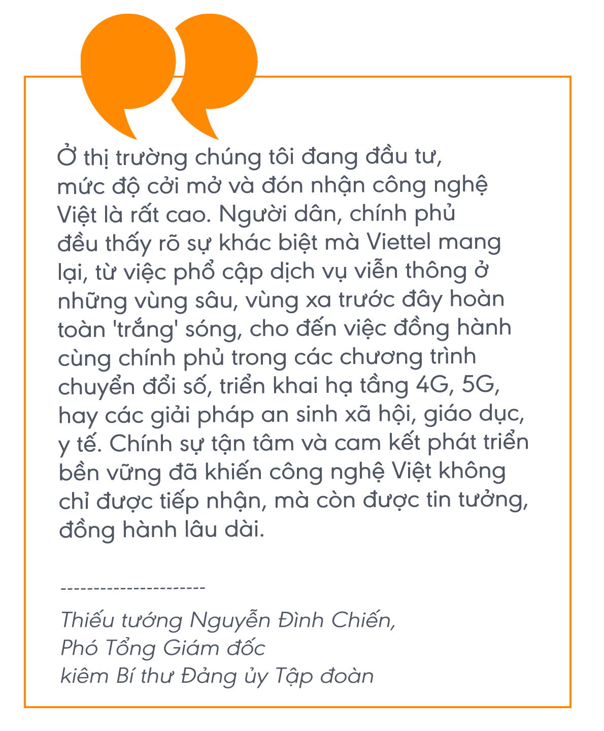 “Có thể nói, mỗi sản phẩm công nghệ Viettel triển khai ở nước ngoài đều mang theo hình ảnh về một Việt Nam năng động, sáng tạo và thân thiện. Đó là cách chúng tôi góp phần định hình một diện mạo mới cho bản đồ viễn thông thế giới, đồng thời khẳng định vai trò của Viettel trong sứ mệnh mở khóa ngoại giao công nghệ bằng trái tim chân thành”, đại diện Viettel bày tỏ và nhấn mạnh thêm: “Điều giúp Viettel được đón nhận ở nước ngoài không chỉ là công nghệ, mà còn là con người. Chúng tôi luôn đến với tinh thần cầu thị, sẵn sàng lắng nghe và đồng hành thật sự với khách hàng. Chính điều đó tạo nên sự khác biệt của giải pháp Việt Nam trong mắt bạn bè quốc tế”.