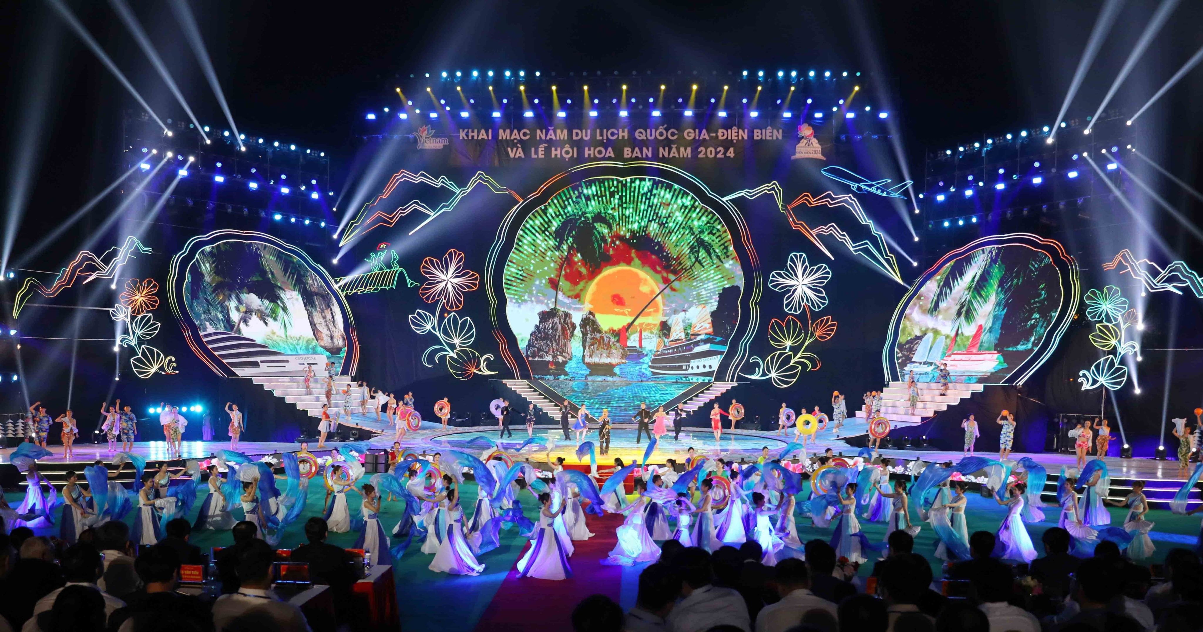 Tiêt mục văn nghệ tại Lễ khai mạc Năm Du lịch quốc gia – Điện Biên và Lễ hội Hoa Ban 2024. (Ảnh: TTXVN)