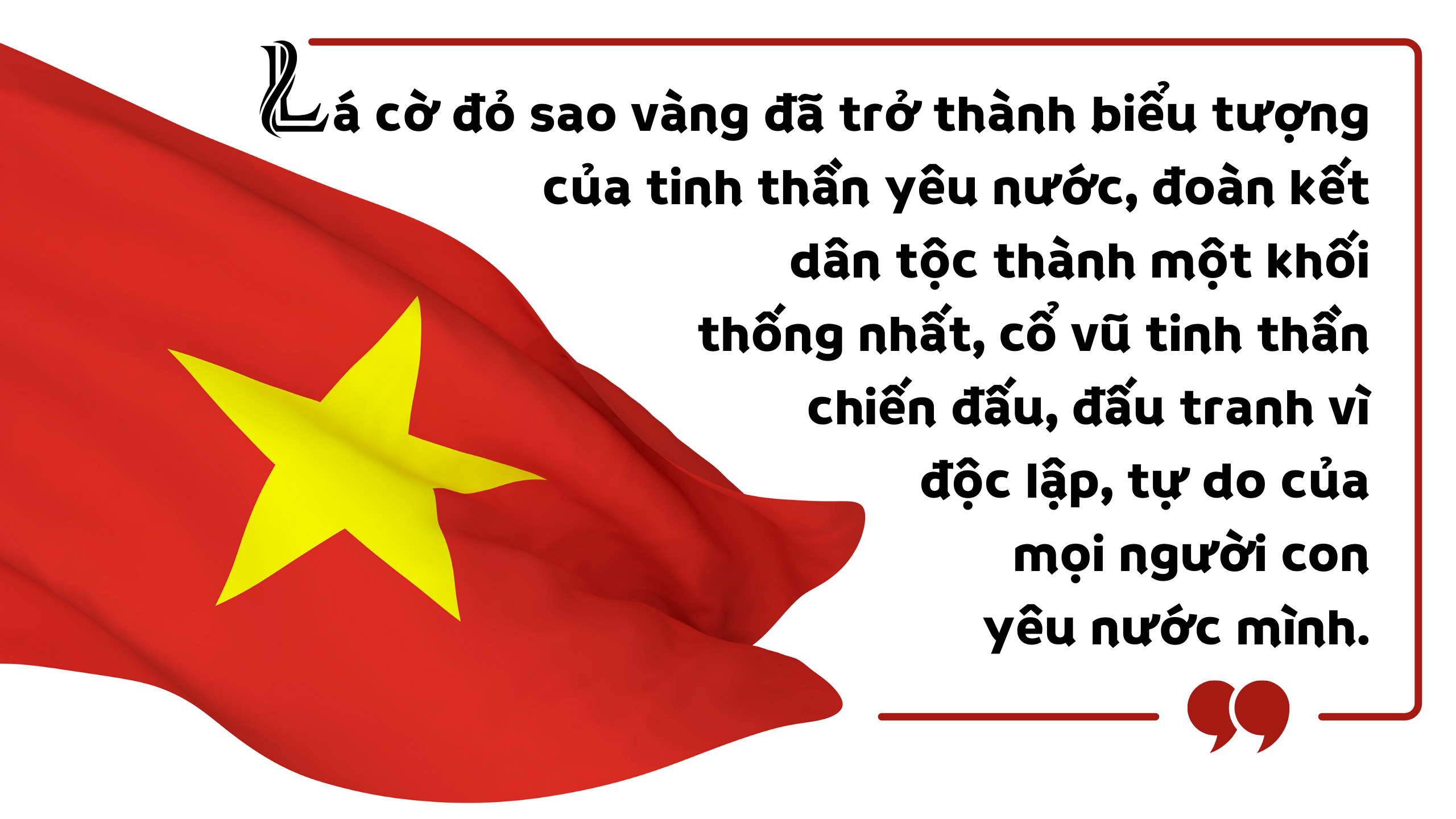 Phải vậy chăng mà như chính lời tâm sự chân thành của tác giả Tiến quân ca, về sau là Quốc ca của Việt Nam, nhạc sĩ Văn Cao, dù chưa từng nhìn thấy tận mắt hình ảnh lá cờ nhưng khi nhận được đề nghị viết một ca khúc cho đội quân cách mạng, ngòi bút trên tay ông đã tuôn trào những lời ca trong dòng suối cảm xúc: Cờ in máu chiến thắng… sao vàng phấp phới...