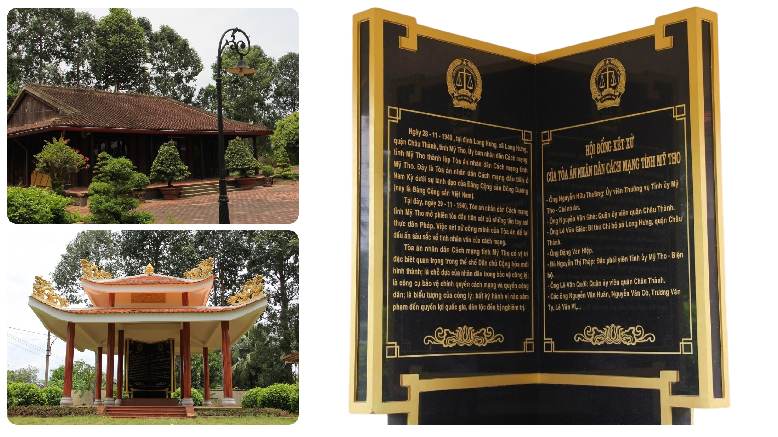 Đây cũng là nơi diễn ra phiên xử án đầu tiên trong lịch sử tòa án cách mạng Việt Nam với sự tham gia của vị luật sư duy nhất, bà Nguyễn Thị Thập; đó là phiên tòa xử “bọn tay sai, ác ôn”, tối 29/11/1940, do Tòa án nhân dân tỉnh Mỹ Tho vừa được thành lập tiến hành.