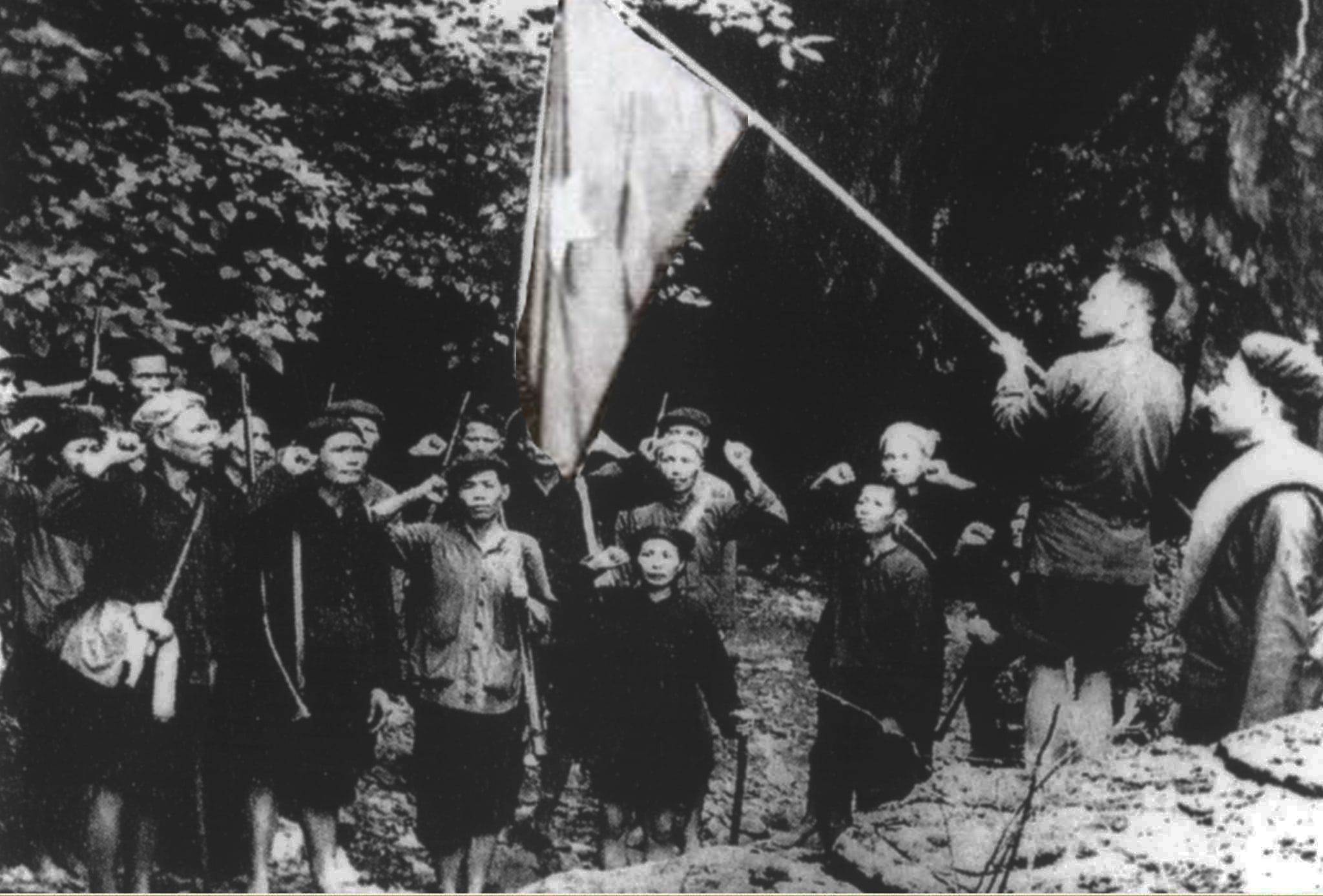 Hình ảnh thứ hai ghi dấu sự xuất hiện lá cờ đỏ sao vàng thiêng liêng, là một bức ảnh đen trắng, nổi bật hình ảnh lá cờ khổ lớn, được giương cao ở chính giữa ảnh. Bức ảnh có kèm dòng chú thích: Rừng Khuổi Nọi, xã Vũ Lễ, huyện Bắc Sơn (Lạng Sơn), nơi thành lập Đội du kích Bắc Sơn (Đội Cứu quốc quân 1), ngày 14/2/1941.