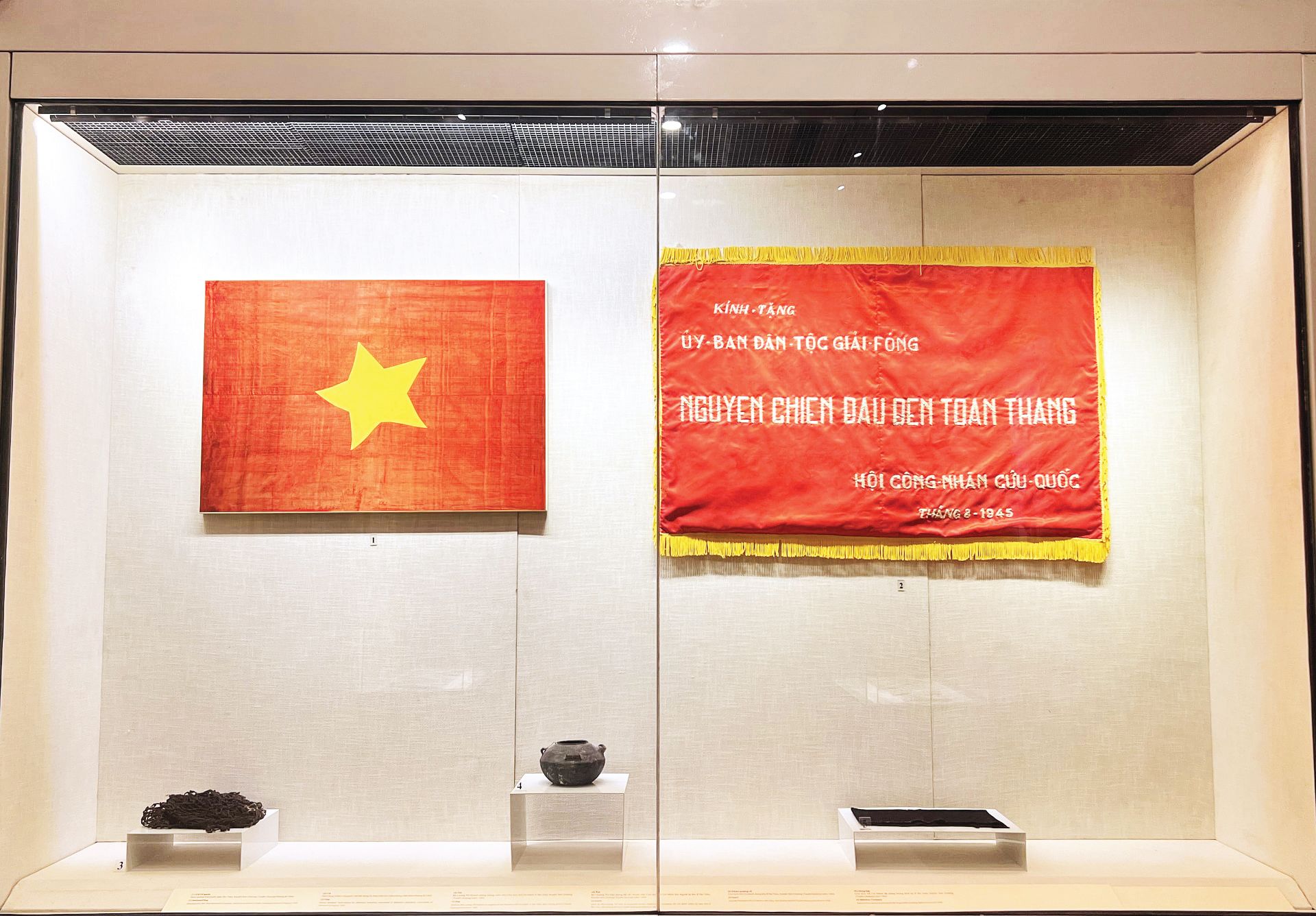 Hiện vật thứ ba chính là lá cờ mà “lãnh tụ Nguyễn Ái Quốc mang từ nước ngoài về treo trong ngày thành lập Mặt trận Việt Minh, tháng 5/1941” (chú thích của Bảo tàng), tại Pác Bó, tỉnh Cao Bằng. Hiện vật này, không phải ảnh hay tranh, tuy đã bị nhuốm màu thời gian nhưng chính vì thế, càng như làm lấp lánh hơn màu đỏ của nền, màu vàng của ngôi sao năm cánh trong mắt lớp hậu thế, khuyến dụ chúng tôi lật giở lại từng trang lịch sử thắm máu đào của bao lớp người đi trước.