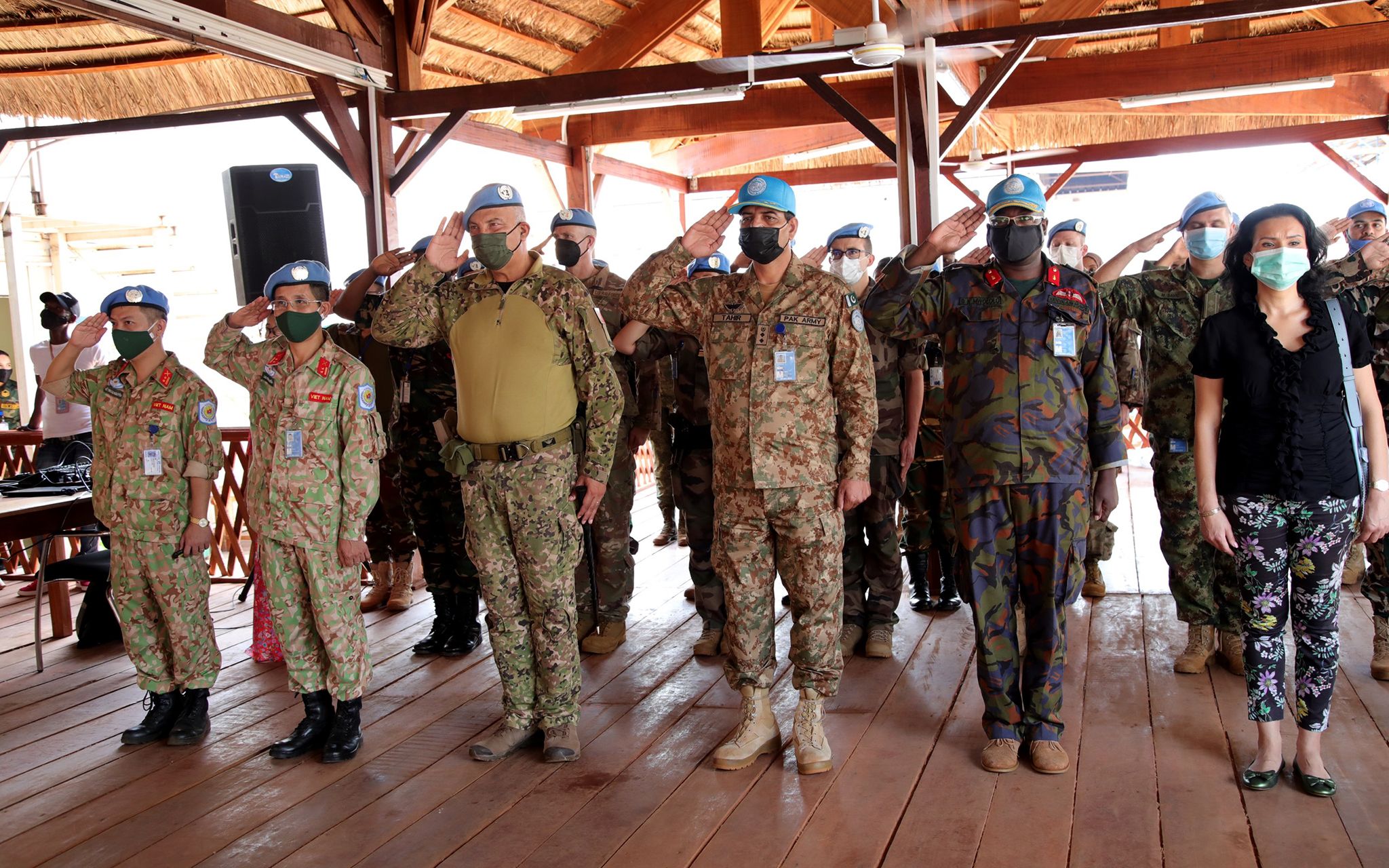 Tự hào biết bao khi đứng trước đông đảo lãnh đạo, đồng nghiệp quốc tế cùng đặt tay lên ngực áo, hát vang bản “Tiến quân ca” trong lễ chào cờ. Bài Quốc ca tôi đã nghe từ khi còn là một cô bé, bài hát quen thuộc như hơi thở, như từng dòng máu chảy trong tim. Vậy mà trong buổi lễ trang trọng này, khi cất tiếng hát, từng câu, từng chữ, từng nốt nhạc vang lên trên một đất nước còn xung đột, còn nội chiến, nơi mà người dân đang khát khao hoà bình, vẫn rung lên trong tôi những cảm xúc nồng nàn.