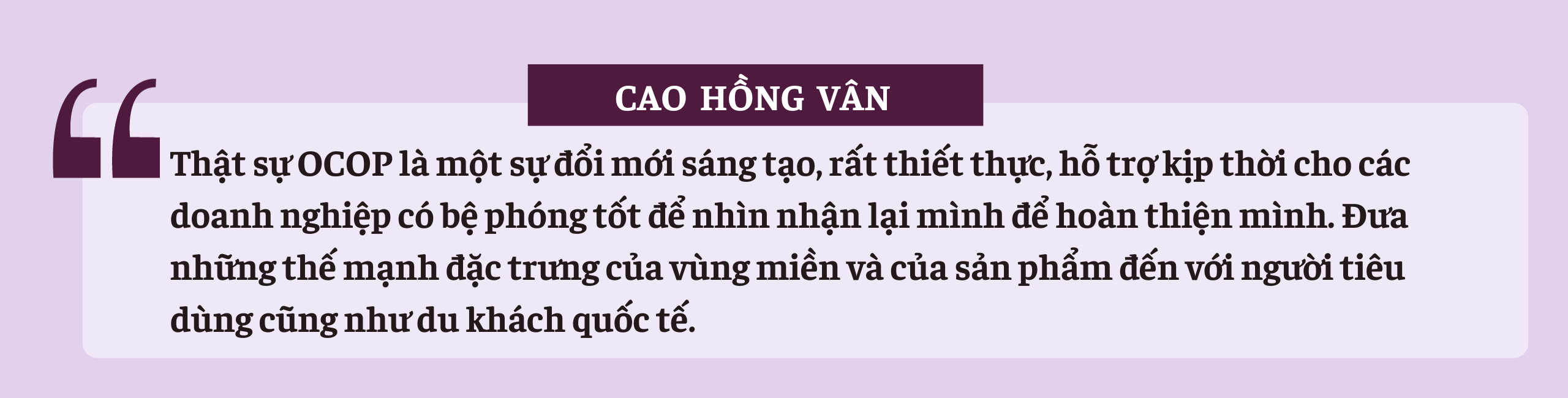 Trong khuôn khổ Hội nghị nghị sĩ trẻ toàn cầu lần thứ 9, chiều 14/9/2023, các sản phẩm từ sá sùng mang thương hiệu Vanbest của chị Vân được chọn để trưng bày tại Triển lãm thành tựu Đổi mới sáng tạo sản phẩm Chương trình mỗi xã một sản phẩm OCOP để giới thiệu hình ảnh đất nước con người Việt Nam tới bạn bè quốc tế. Tại đây, chị Cao Hồng Vân phát biểu: “Thật sự OCOP là một sự đổi mới sáng tạo, rất thiết thực, hỗ trợ kịp thời cho các doanh nghiệp có bệ phóng tốt để nhìn nhận lại mình để hoàn thiện mình. Đưa những thế mạnh đặc trưng của vùng miền và của sản phẩm đến với người tiêu dùng cũng như du khách quốc tế".