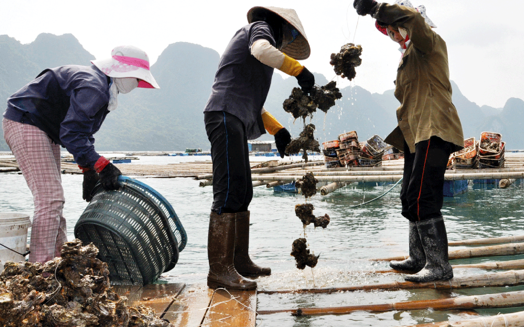 Nghề nuôi hàu phát triển mạnh ở vịnh Bái Tử Long, tỉnh Quảng Ninh. Ảnh: NGHĨA HIẾU