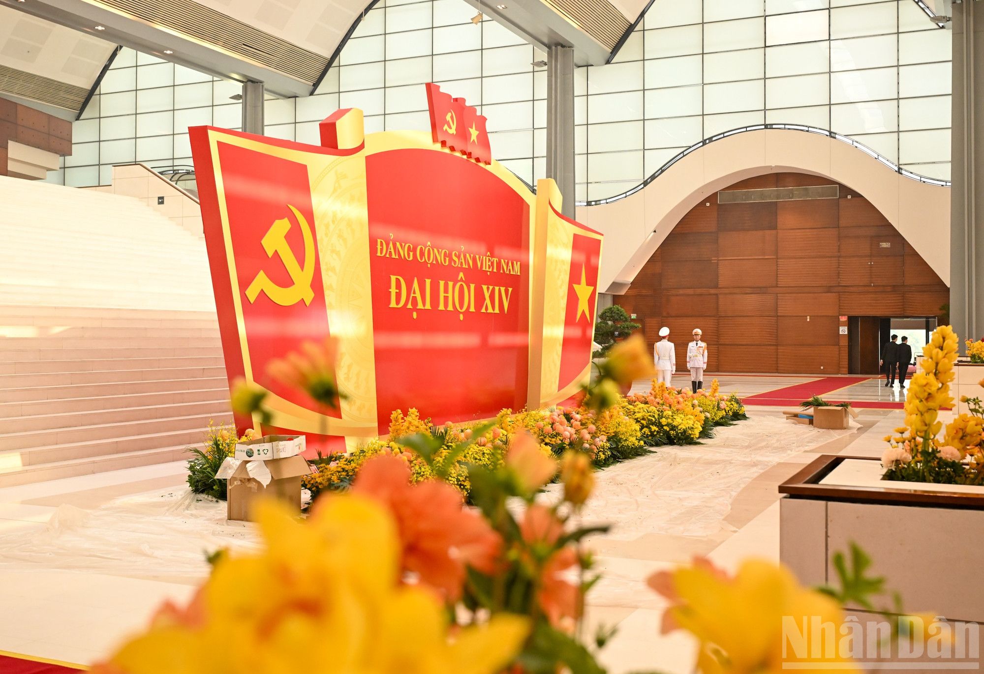 Tại Trung tâm Hội nghị quốc gia - nơi dự kiến diễn ra Đại hội XIV của Đảng từ ngày 19 đến 25/1, công tác trang trí, khánh tiết đã dần hoàn tất. (Ảnh: DUY LINH)