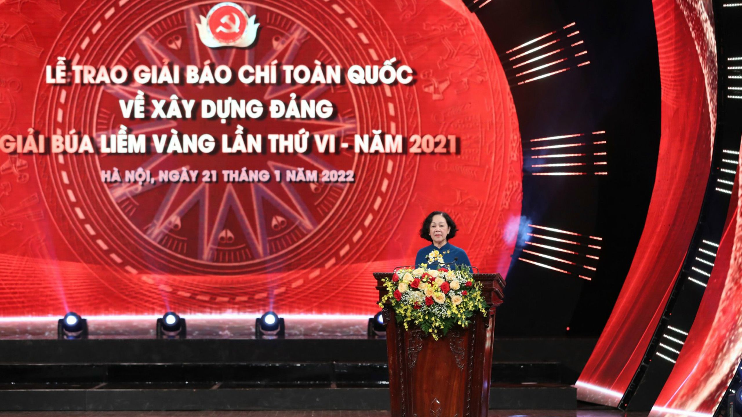 Tối 21/1, tại Nhà hát Lớn Hà Nội, nhân dịp kỷ niệm 92 năm Ngày thành lập Đảng Cộng sản Việt Nam, mừng Đảng, mừng Xuân, mừng Đất nước và chào đón năm mới Nhâm Dần 2022, Ban Tổ chức Trung ương chủ trì, phối hợp Báo Nhân Dân, Tạp chí Cộng sản, Đài Truyền hình Việt Nam, Hội Nhà báo Việt Nam tổ chức Lễ công bố và trao Giải báo chí toàn quốc về xây dựng Đảng (mang tên Búa liềm vàng) lần thứ VI-năm 2021. Báo Nhân Dân xin trân trọng giới thiệu toàn văn bài phát biểu của đồng chí Trương Thị Mai, Ủy viên Bộ Chính trị, Bí thư Trung ương Đảng, Trưởng ban Tổ chức Trung ương, Trưởng Ban Chỉ đạo Giải búa liềm vàng.