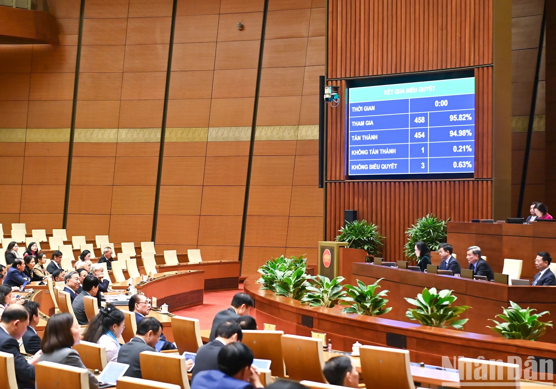 Đại biểu Quốc hội biểu quyết thông qua Nghị quyết của Quốc hội bổ sung kế hoạch phát triển kinh tế-xã hội năm 2025 với mục tiêu tăng trưởng đạt 8% trở lên.