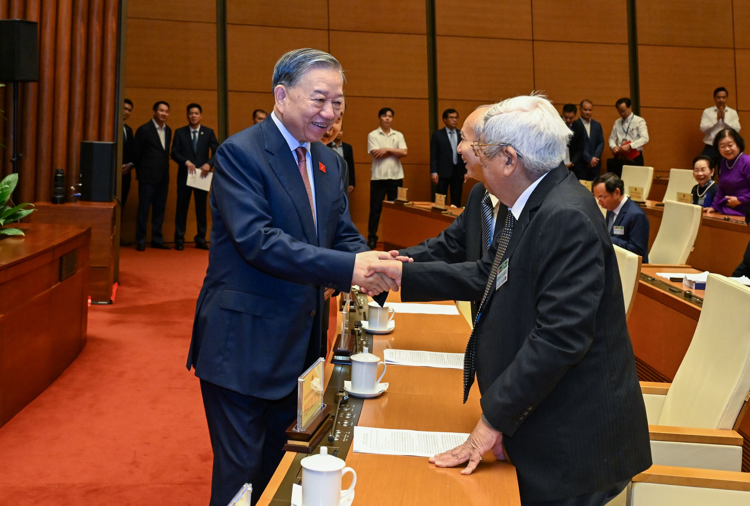 Nhân dịp này, chúng ta trân trọng ghi nhận và đánh giá cao những đóng góp quan trọng của Quốc hội, các vị đại biểu Quốc hội khóa XV, ủy viên Hội đồng nhân dân các cấp nhiệm kỳ 2020-2025. Trong nhiệm kỳ vừa qua, Quốc hội, Hội đồng nhân dân các cấp đã nỗ lực đổi mới tổ chức và phương thức hoạt động, nâng cao chất lượng lập pháp, giám sát, quyết định nhiều vấn đề hệ trọng, góp phần tháo gỡ nhiều điểm nghẽn thể chế, phục hồi và phát triển kinh tế - xã hội, củng cố quốc phòng, an ninh, nâng cao vị thế quốc tế của đất nước. Những kết quả đó, cùng với truyền thống 80 năm vẻ vang của Quốc hội Việt Nam, là nền tảng quan trọng để Quốc hội khóa XVI kế thừa, phát huy và phát triển lên tầm cao mới.
