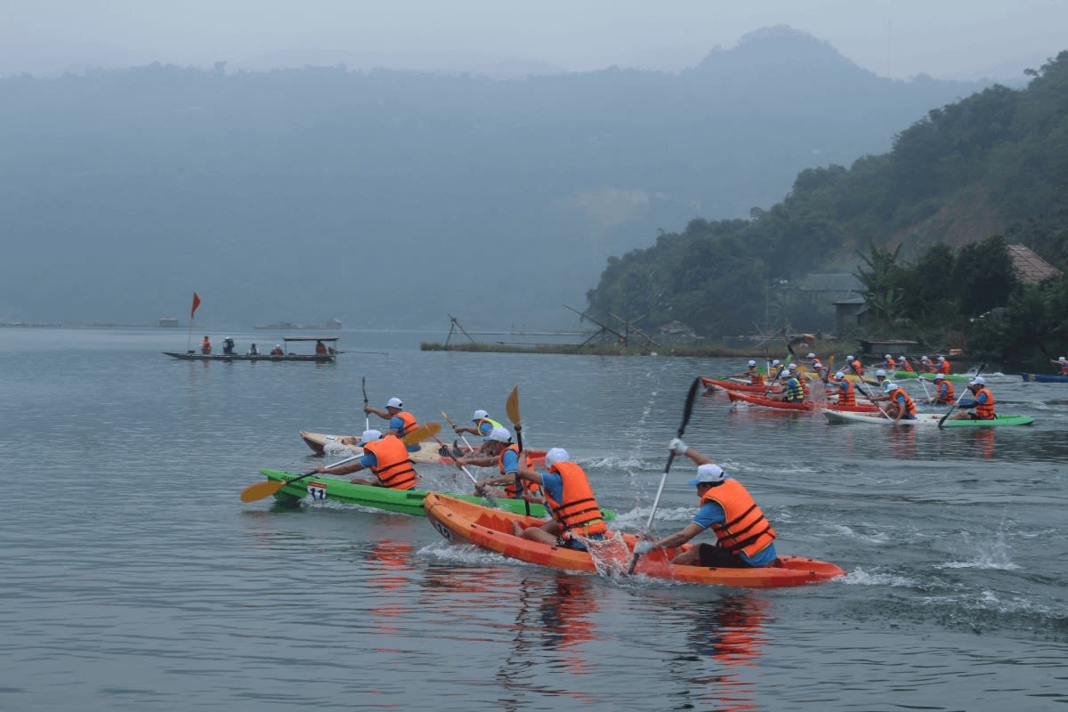 Giải đua thuyền Kayak diễn ra trong khuôn khổ Ngày hội Văn hóa, thể thao, quảng bá du lịch huyện Đà Bắc năm 2023. Ảnh: sovanhoa.hoabinh.gov.vn