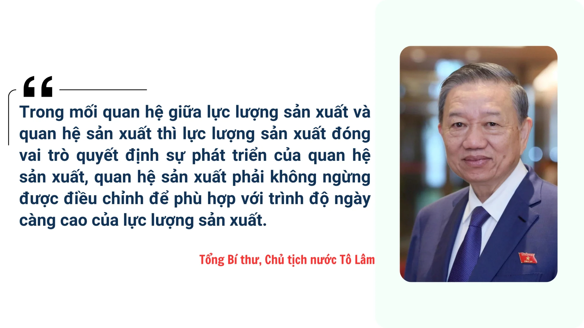 Trong nhiều bài phát biểu gần đây tại các hội nghị, diễn đàn quan trọng ở trong nước và nước ngoài, Tổng Bí thư Tô Lâm nhắc đến việc Việt Nam đang chuẩn bị bước vào một giai đoạn phát triển mới, một kỷ nguyên mới - “kỷ nguyên vươn mình của dân tộc”. Một trong những yêu cầu, nhiệm vụ để Việt Nam vững bước tiến vào “kỷ nguyên vươn mình của dân tộc” là cần phải xác lập một phương thức sản xuất mới, trong đó phát triển lực lượng sản xuất tiên tiến, hiện đại là nòng cốt; trên cơ sở đó, xây dựng quan hệ sản xuất tiến bộ, phù hợp để đưa nền kinh tế đất nước tiếp tục có những bước phát triển bứt phá.