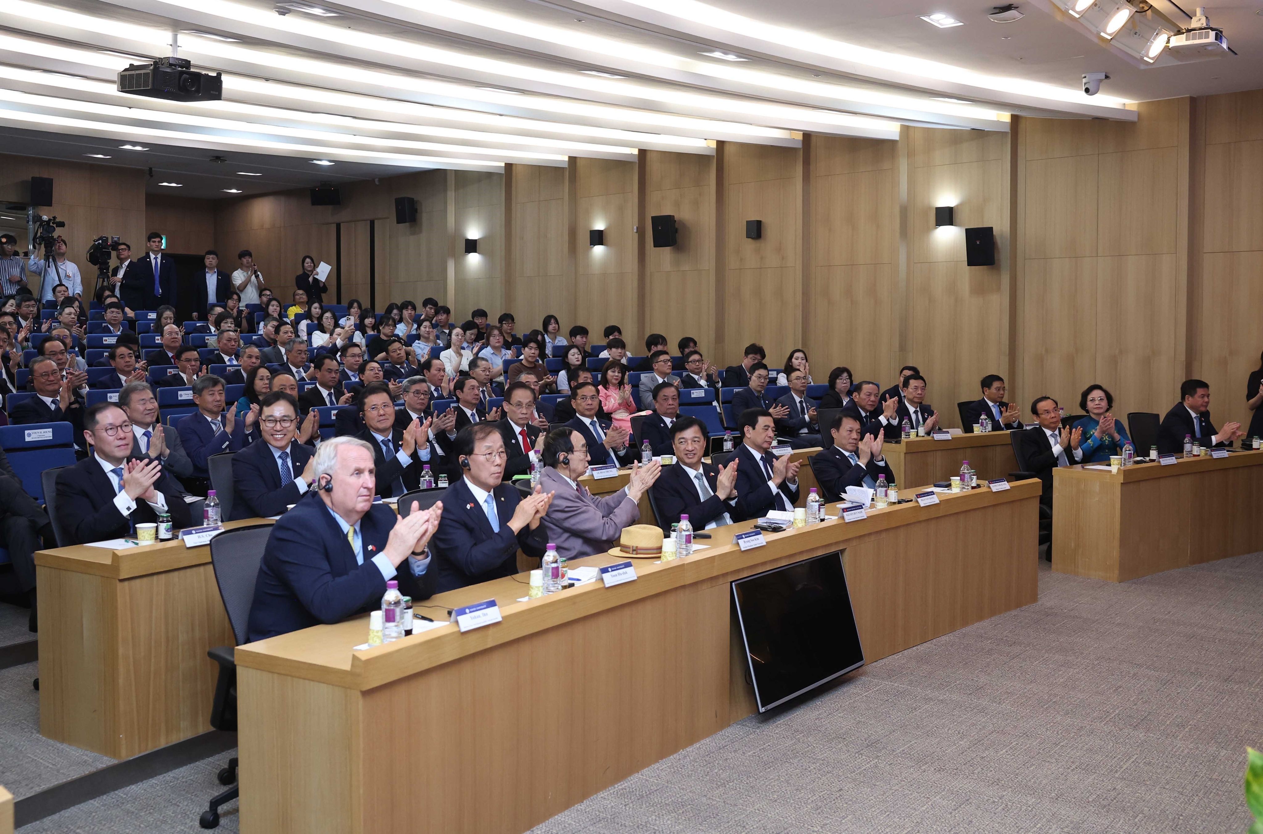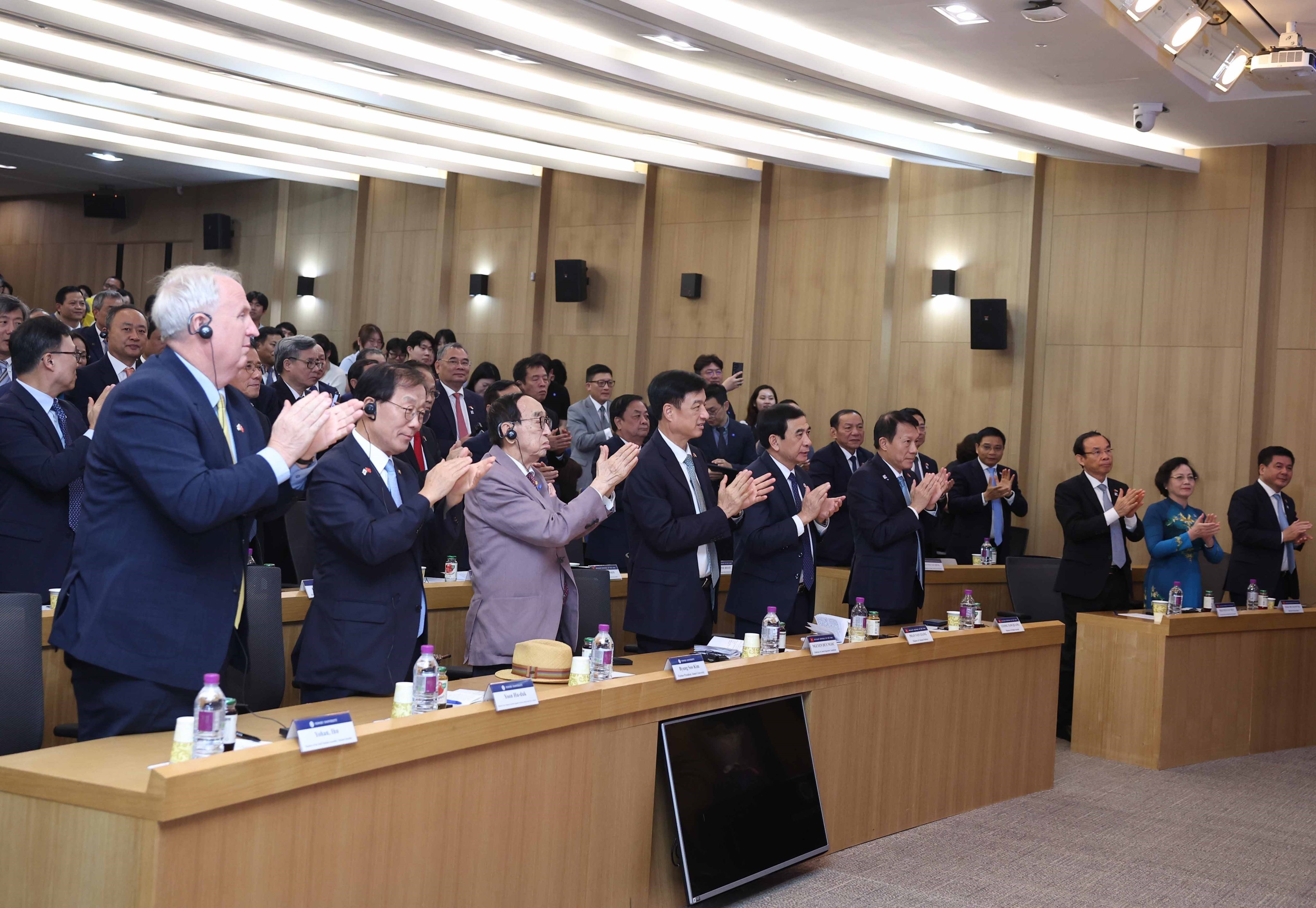 Trước hết, tôi xin bày tỏ niềm vinh dự được đến thăm Hàn Quốc vào một thời điểm rất quan trọng mang tính lịch sử của hai nước chúng ta. Năm 2025 là năm rất đặc biệt đối với cả hai nước Việt Nam và Hàn Quốc. Tháng 8 này, Hàn Quốc kỷ niệm 80 năm Ngày Quang Phục. Tháng 9, chúng tôi sẽ kỷ niệm 80 năm Ngày Chủ tịch Hồ Chí Minh đọc bản Tuyên ngôn độc lập bất hủ, đem lại ánh sáng độc lập, tự do cho toàn thể dân tộc Việt Nam, ghi tên Việt Nam trên bản đồ thế giới. Trong không khí hướng tới những ngày kỷ niệm lớn, tôi rất vui mừng được đến thăm và phát biểu tại Đại học Yonsei, ngôi trường cổ kính với 140 năm truyền thống, một trong những trường đại học hàng đầu và là đại diện tiêu biểu cho sức mạnh và trí tuệ của con người Hàn Quốc. Tôi chân thành cảm ơn sự tiếp đón nồng ấm, chu đáo của lãnh đạo, nhân dân Hàn Quốc và Đại học Yonsei dành cho tôi và Đoàn đại biểu Việt Nam.