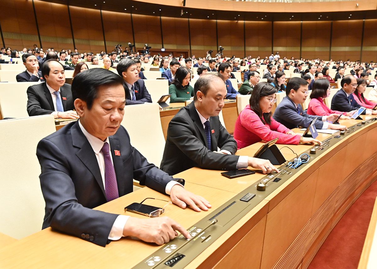 Các vị đại biểu Quốc hội biểu quyết thông qua Nghị quyết trong phiên bế mạc chiều 16/6.