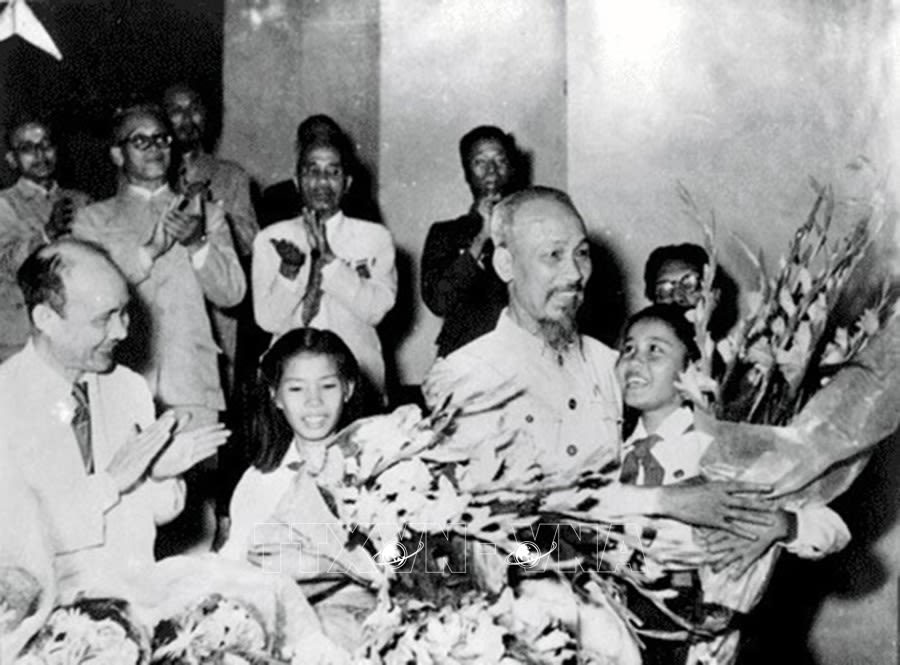 Trong suốt quá trình lãnh đạo cách mạng, Đảng ta và Chủ tịch Hồ Chí Minh luôn đặc biệt quan tâm, phát huy sức mạnh dân tộc và xác định đây là chủ trương xuyên suốt, nhất quán, làm nên sức mạnh nội sinh để chiến thắng. Trong ảnh: Bác Hồ tiếp thân mật các đại biểu nhân dân Hà Nội sau ngày giải phóng Thủ đô (16/10/1954). (Ảnh tư liệu: TTXVN)