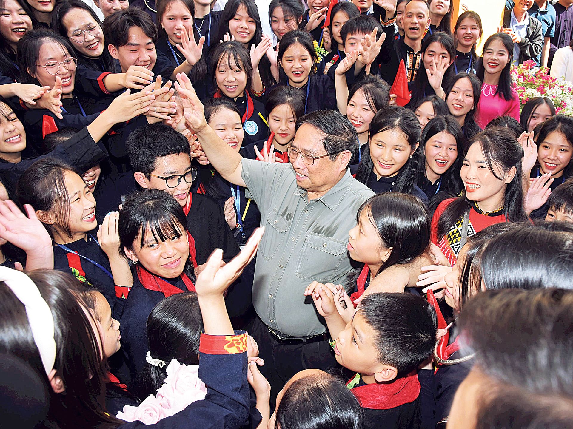 Thủ tướng Phạm Minh Chính với người dân xã Na Sầm (tỉnh Lạng Sơn). Ảnh: TRẦN HẢI