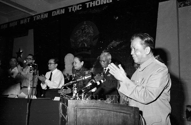 Tổng Bí thư Đảng Cộng sản Việt Nam Lê Duẩn phát biểu tại Đại hội Mặt trận thống nhất Việt Nam (31/1/1977). Ảnh: TTXVN