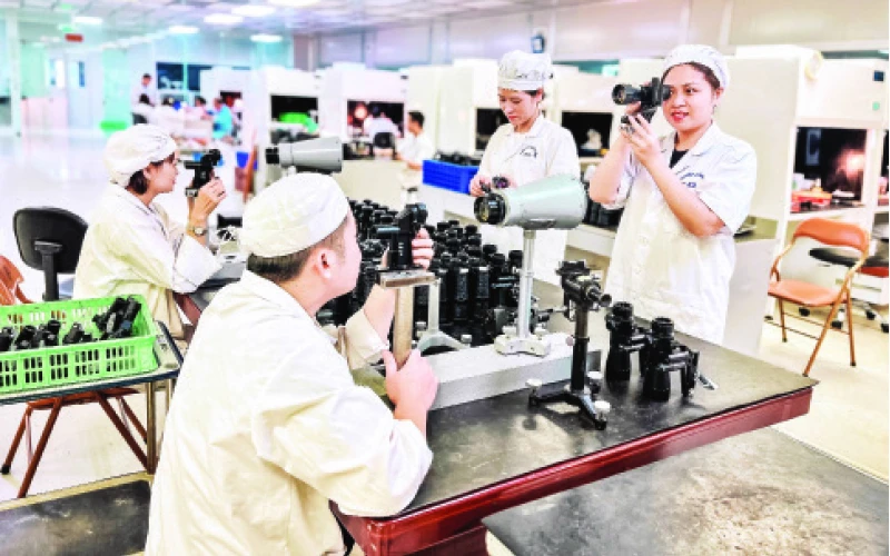 Công nhân Nhà máy Z199-Tổng cục Công nghiệp quốc phòng thực hiện hiệu chỉnh tính năng kính ngắm.