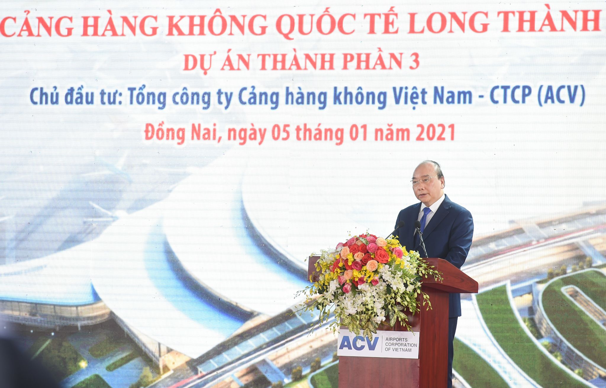 Ngày 5/1/2021, Thủ tướng Nguyễn Xuân Phúc dự lễ khởi công xây dựng Cảng hàng không quốc tế Long Thành giai đoạn 1 - Dự án thành phần 3.