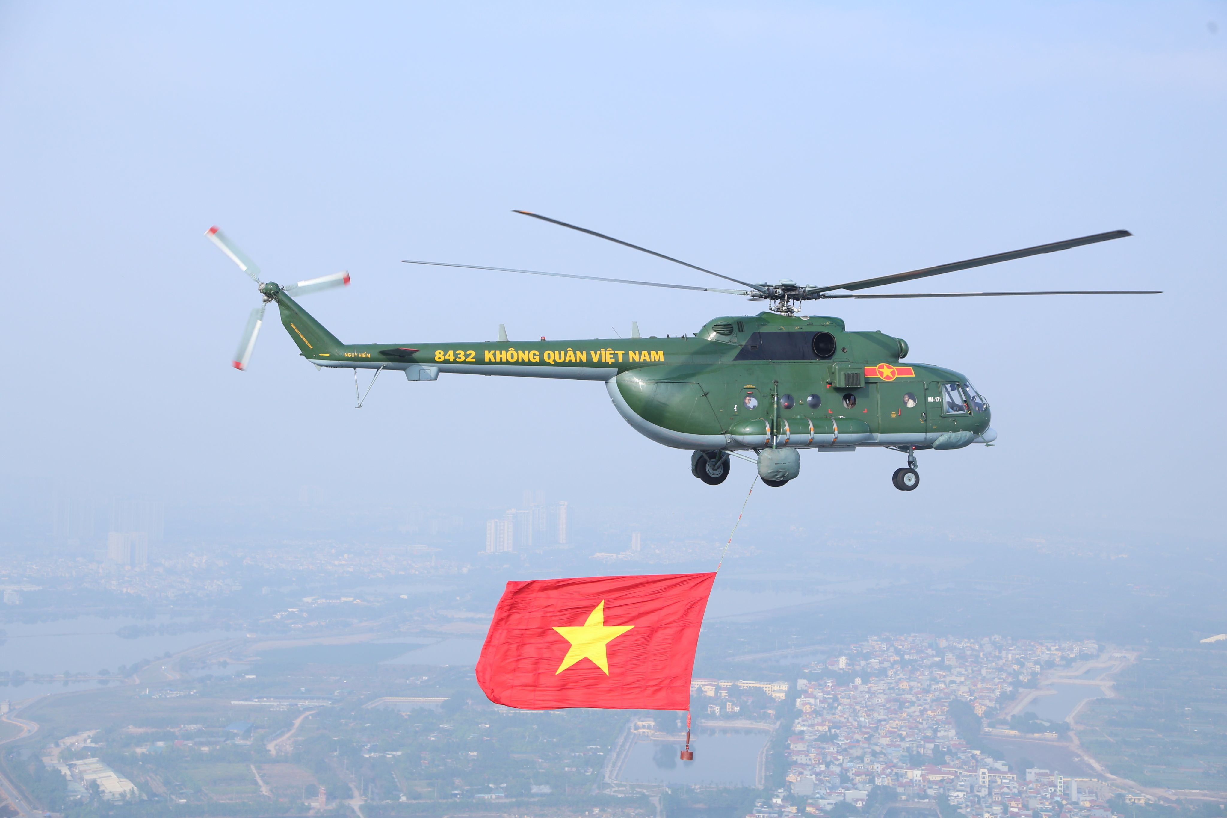 Đối với trực thăng, chúng tôi tổ chức thành hai tốp. Tốp thứ nhất bay 3 chiếc theo đội hình mũi tên. Tốp thứ hai 4 chiếc, bay theo đội hình quả trám, mang theo Cờ Tổ quốc và cờ triển lãm. Toàn bộ trực thăng sẽ cất cánh từ sân bay Hòa Lạc.