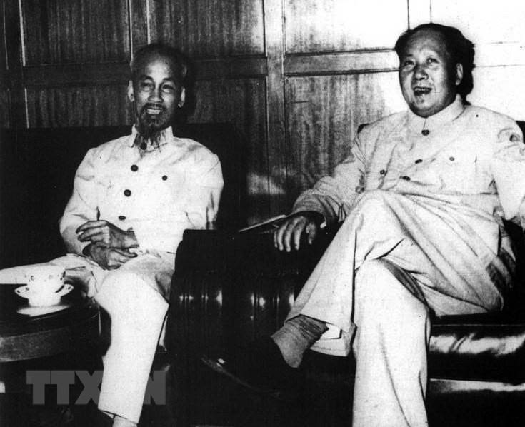 Chủ tịch Mao Trạch Đông tiếp Chủ tịch Hồ Chí Minh tại thủ đô Bắc Kinh, Trung Quốc, ngày 25/6/1955. (Ảnh: TTXVN)