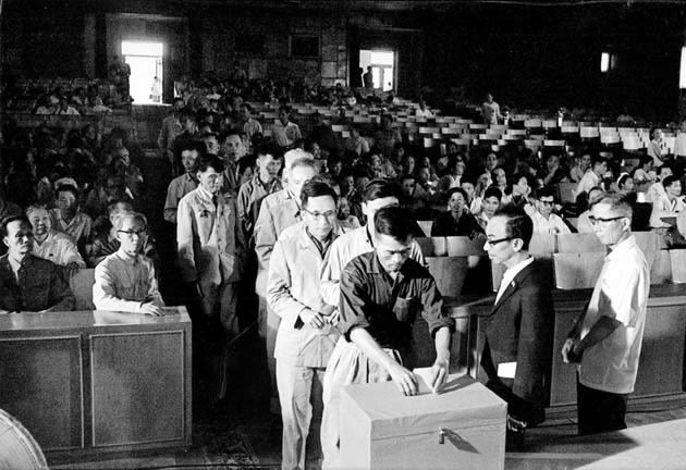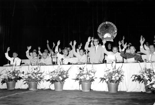 Các Đại biểu Quốc hội thông qua Luật tổ chức Hội đồng Nhân dân và Ủy ban Hành chính các cấp tại kỳ họp thứ 5, Quốc hội khóa II, năm 1962.