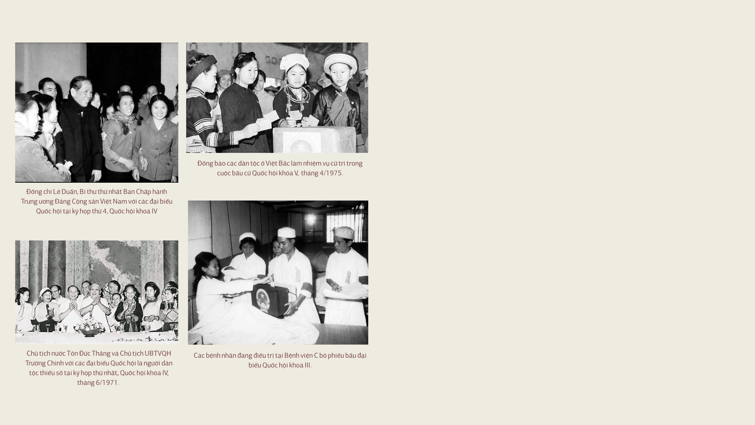 Đại biểu Quốc hội do nhân dân bầu ra theo đường lối chính sách cán bộ của Đảng là những người có đạo đức cần, kiệm, liêm, chính, chí công vô tư, khiêm tốn, hòa mình với quần chúng, một lòng, một dạ phụng sự nhân dân và phục vụ Tổ quốc. Những năm 1960-1976, quan hệ giữa Quốc hội với Chính phủ và các cơ quan tư pháp luôn gắn kết với nhau trên cơ sở mỗi cơ quan đều thực hiện đúng đắn chức năng, nhiệm vụ của mình theo luật định cùng nhằm mục tiêu phục vụ sự nghiệp cách mạng dưới sự lãnh đạo của Đảng...