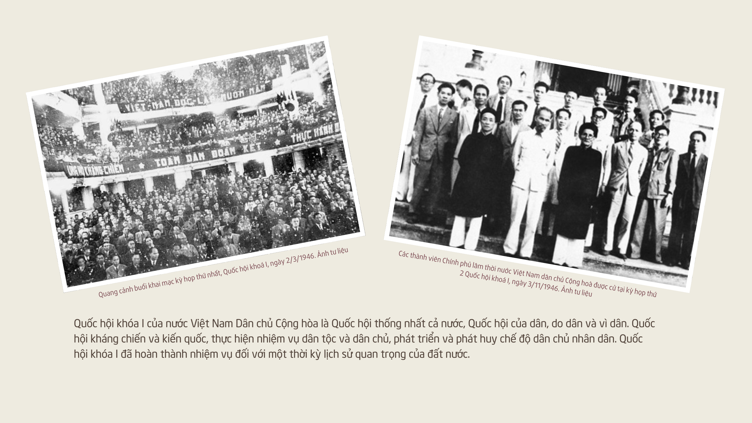 Tuân thủ sự lãnh đạo của Đảng, Quốc hội đã thực thi đúng đắn quyền hạn, nhiệm vụ của mình đi đến kháng chiến, kiến quốc thành công; xây dựng chủ nghĩa xã hội ở miền bắc vững mạnh; giải phóng hoàn toàn miền nam, non sông, đất nước thống nhất một nhà.