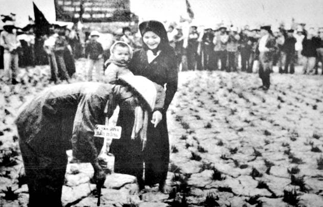 Quốc hội khóa I đã góp phần quan trọng vào việc thực hiện thành công sự nghiệp kháng chiến chống Pháp, đảm bảo chính sách “người cày có ruộng”. Ảnh: Thực hiện chính sách cải cách ruộng đất, nông dân ở ngoại thành Hà Nội được chia ruộng cày, năm 1953.