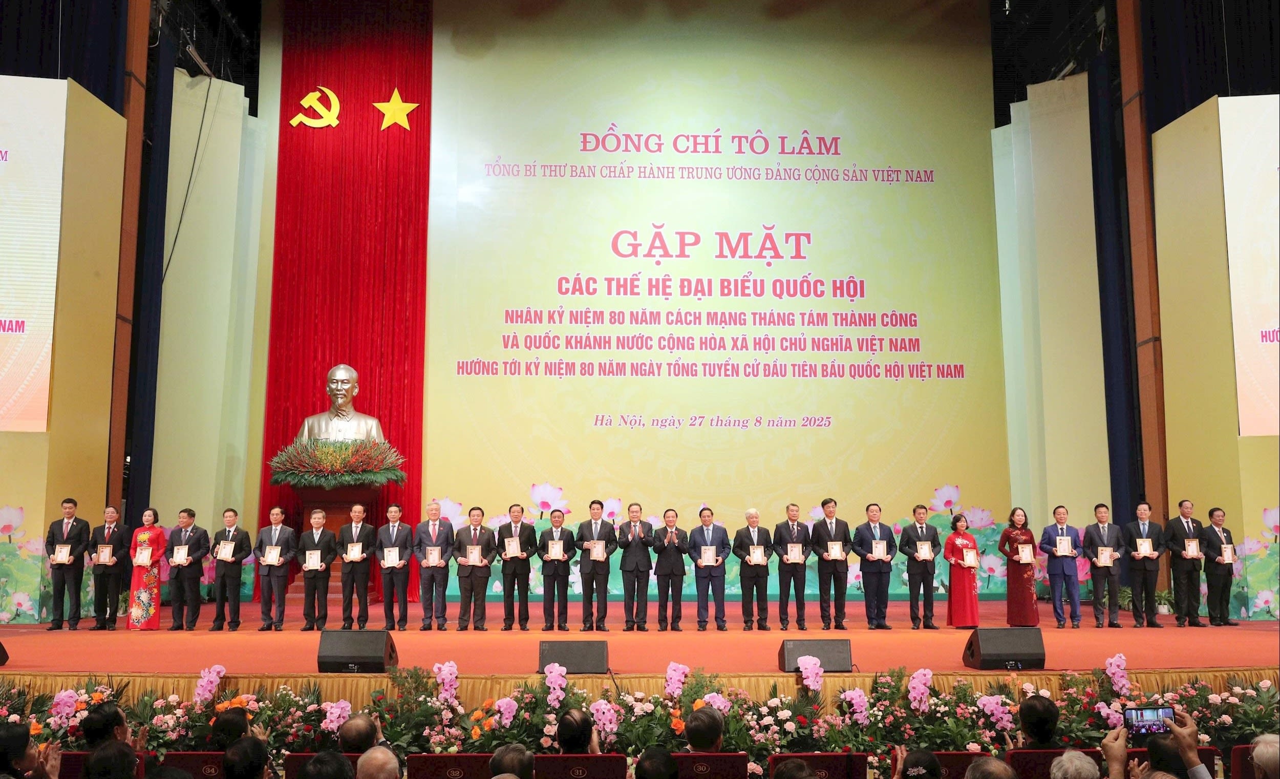 Chủ tịch Quốc hội Trần Thanh Mẫn trao Kỷ niệm chương "Vì sự nghiệp Quốc hội Việt Nam" tặng các đồng chí lãnh đạo Đảng, Nhà nước là đại biểu Quốc hội.