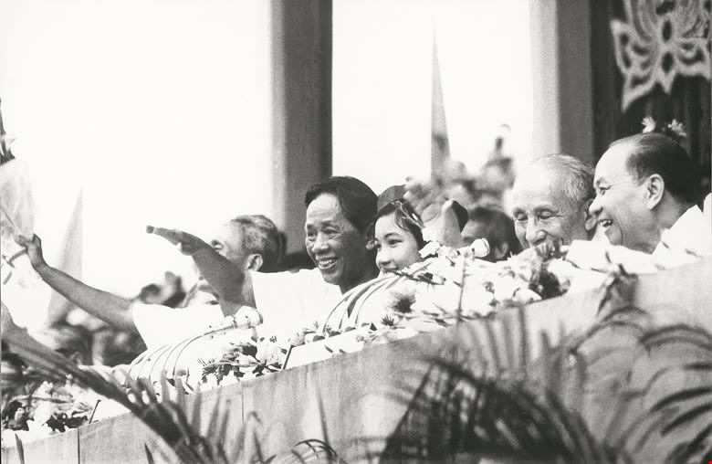 Các đồng chí lãnh đạo Đảng, Nhà nước, Quốc hội và Chính phủ dự mít tinh tại Hà Nội mừng miền nam hoàn toàn giải phóng, ngày 7/5/1975.