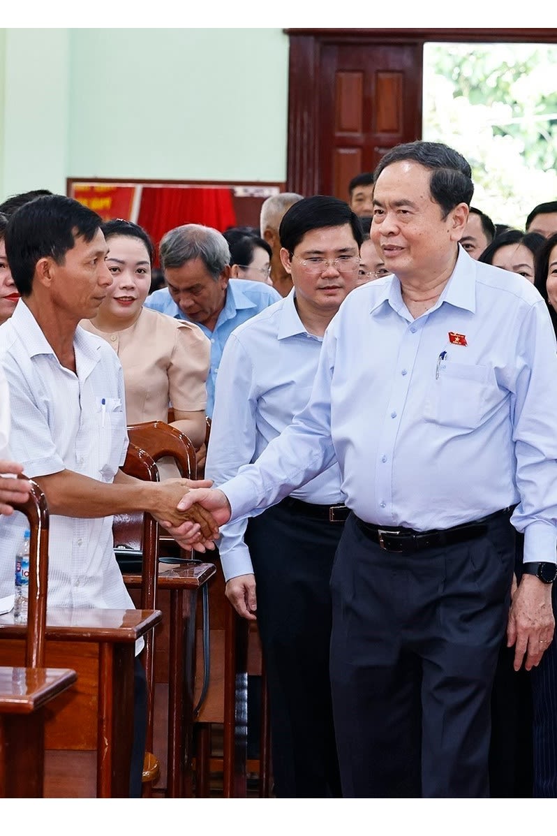 Chủ tịch Quốc hội Trần Thanh Mẫn tiếp xúc cử tri sau Kỳ họp thứ 9 tại Cần Thơ. (Ảnh: TTXVN)