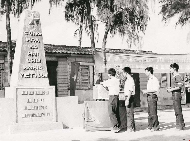 Cán bộ, chiến sĩ quân đội trên đảo Trường Sa tham gia bầu cử đại biểu Quốc hội khóa VII, tháng 4/1981.