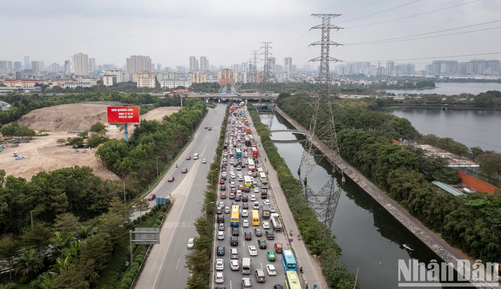 Lưu lượng phương tiện giao thông dày đặc trên các tuyến đường cửa ngõ ra, vào Thủ đô.