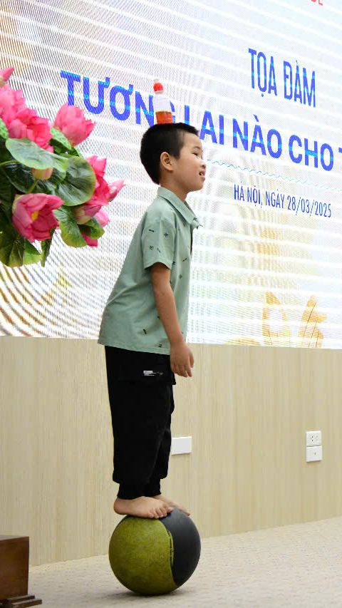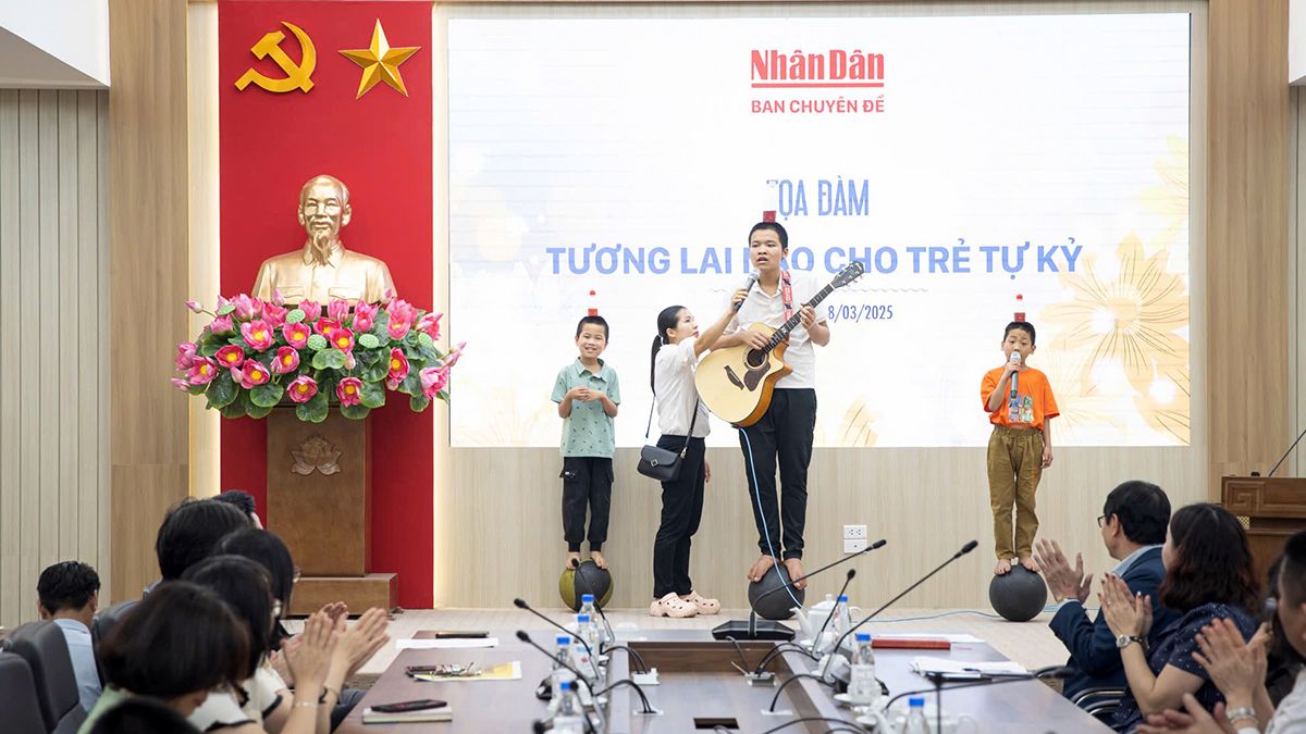 Một tiết mục biểu diễn của trẻ tự kỷ tại tọa đàm "Tương lai nào cho trẻ tự kỷ?". Ảnh: SƠN TÙNG