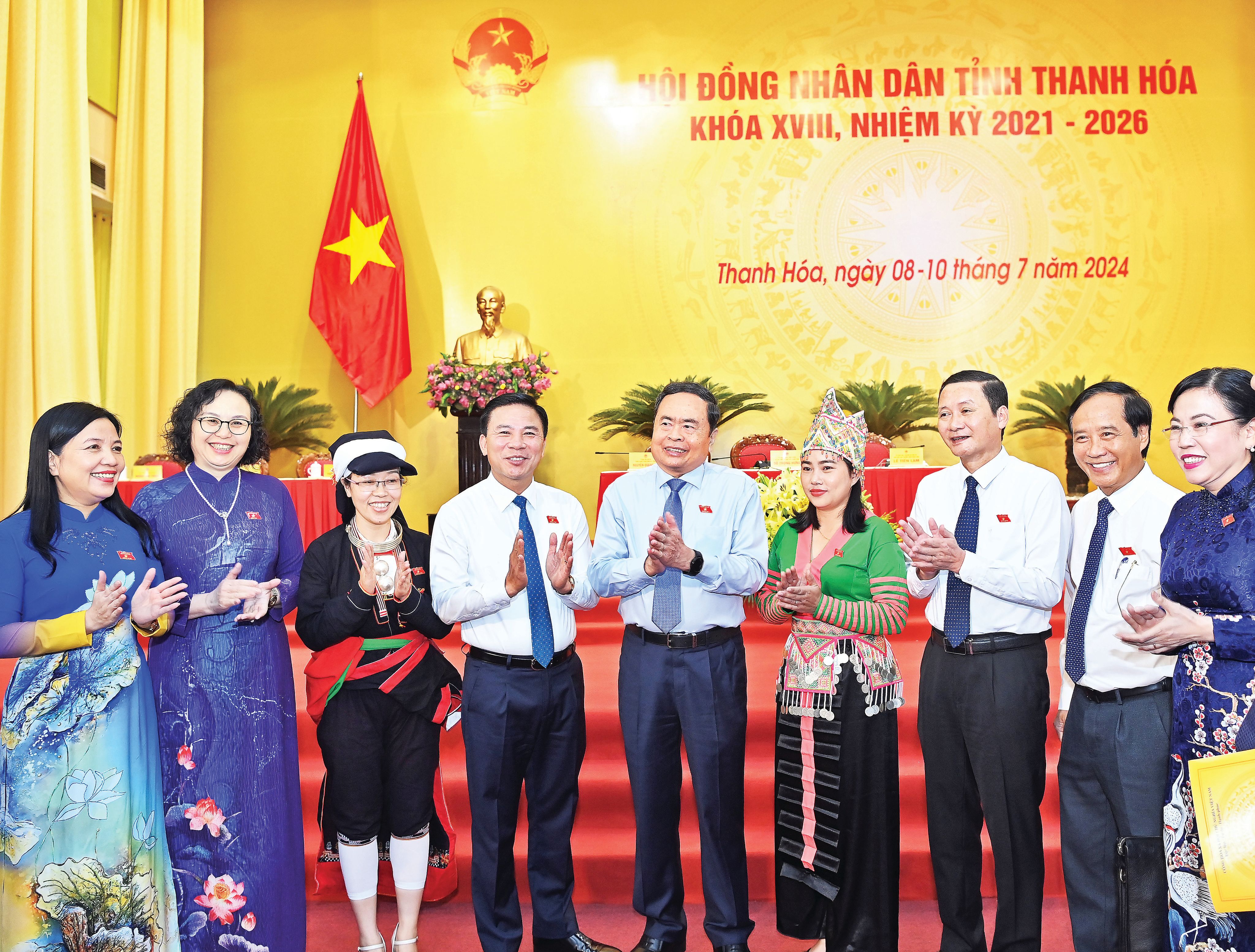 Chủ tịch Quốc hội Trần Thanh Mẫn với các đại biểu tại Kỳ họp thứ 20 Hội đồng nhân dân tỉnh Thanh Hóa. Ảnh: DUY LINH