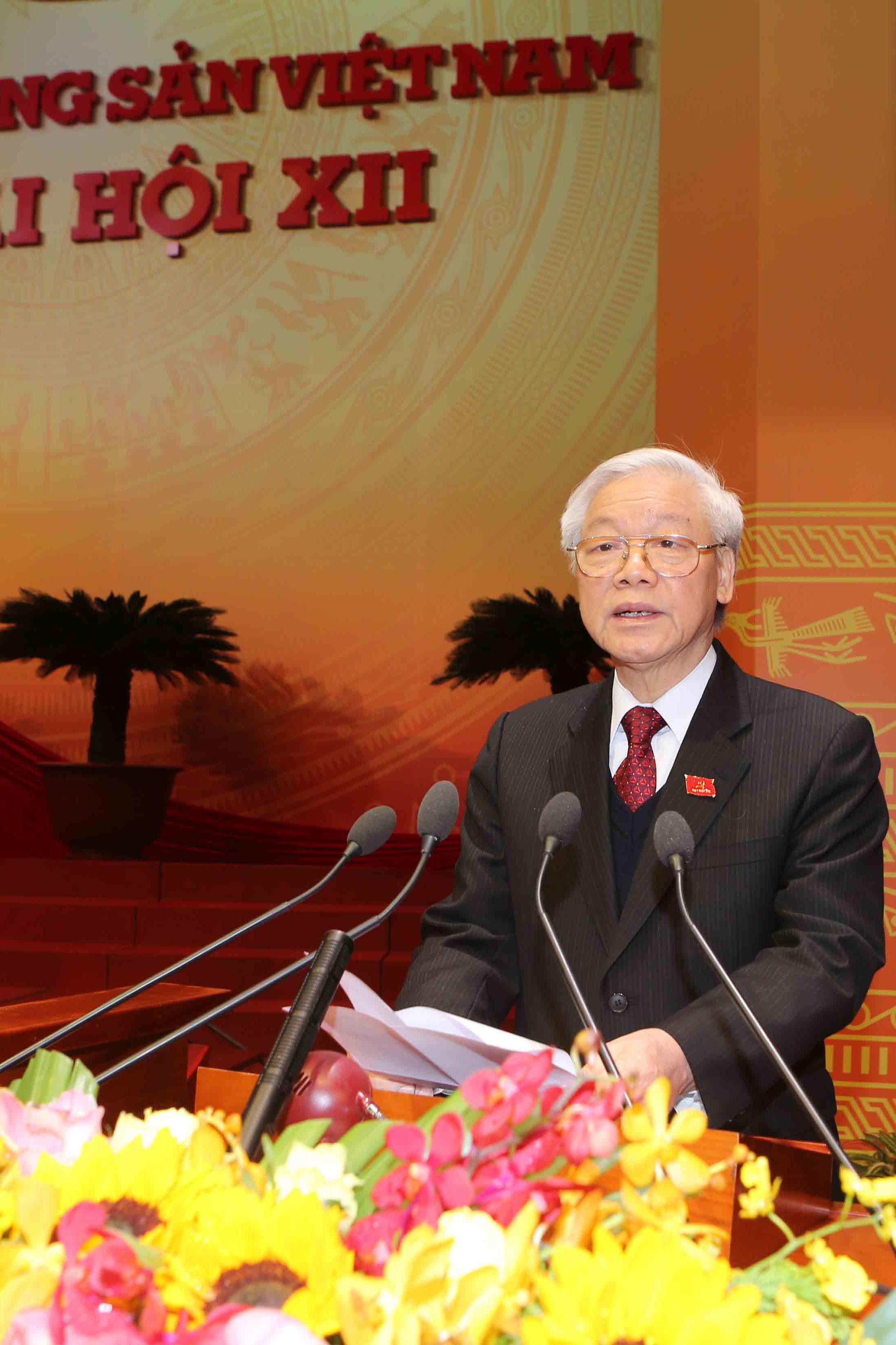 Đồng chí Nguyễn Phú Trọng, Tổng Bí thư Ban Chấp hành Trung ương Đảng khóa XII đọc Diễn văn Bế mạc Đại hội.