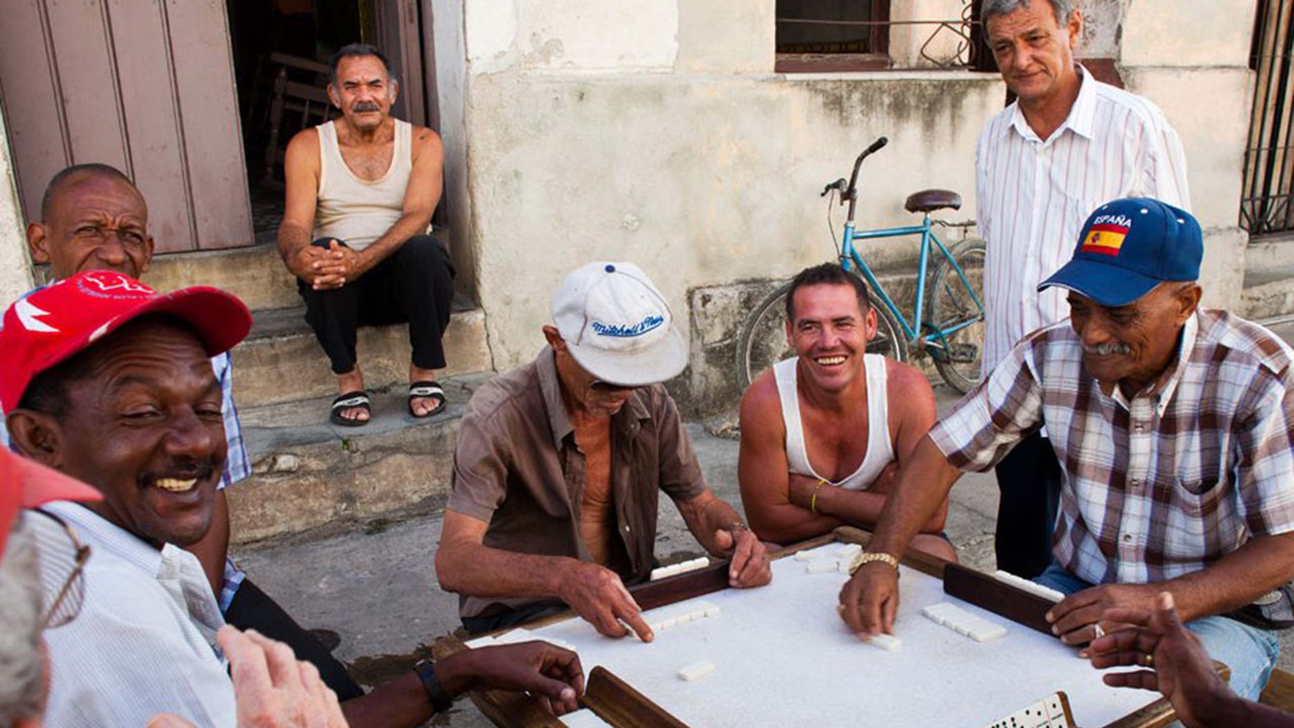 Những người đàn ông Cuba vui vẻ bên bàn domino những ngày cuối năm.