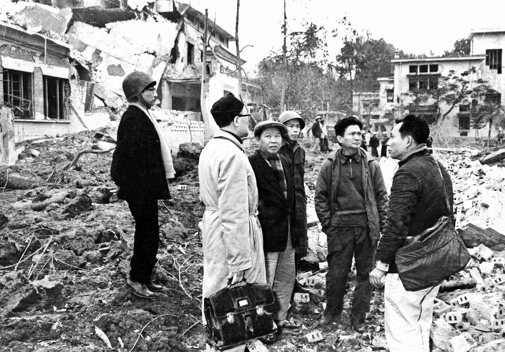 Các nhà văn, nhà báo chứng kiến cảnh Bệnh viện Bạch Mai bị bom Mỹ tàn phá năm 1972. Ảnh: TRỊNH HẢI
