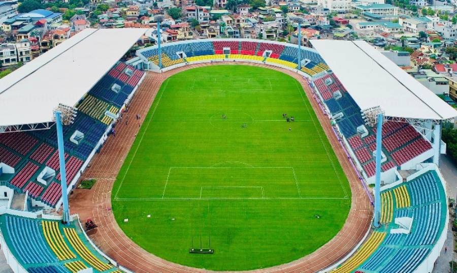 Sân vận động Cẩm Phả được đầu tư nâng cấp đạt tiêu chuẩn tổ chức các giải bóng đá quốc gia và quốc tế. (Ảnh: Trung tâm truyền thông tỉnh Quảng Ninh).