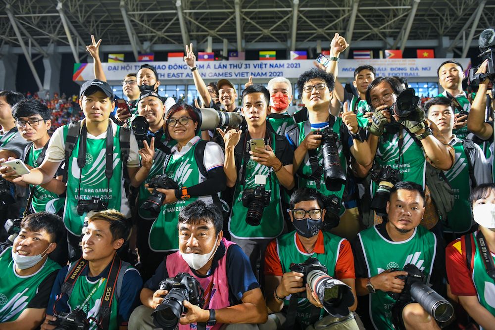 Các phóng viên trong nước và quốc tế tác nghiệp tại SEA Games 31. (Ảnh: Thành Đạt)