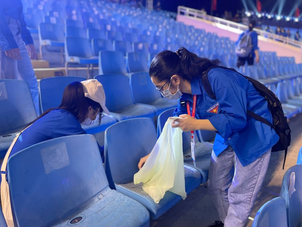 Lễ khai mạc kết thúc, khán giả ra về cũng là lúc những bóng áo xanh tình nguyện viên miệt mài làm việc. Các em thu gom rác, dọn dẹp khán đài và sân khấu biểu diễn để ngày hôm sau, sân vận động quốc gia Mỹ Đình sẵn sàng cho những cuộc thi đấu đầy kịch tính.