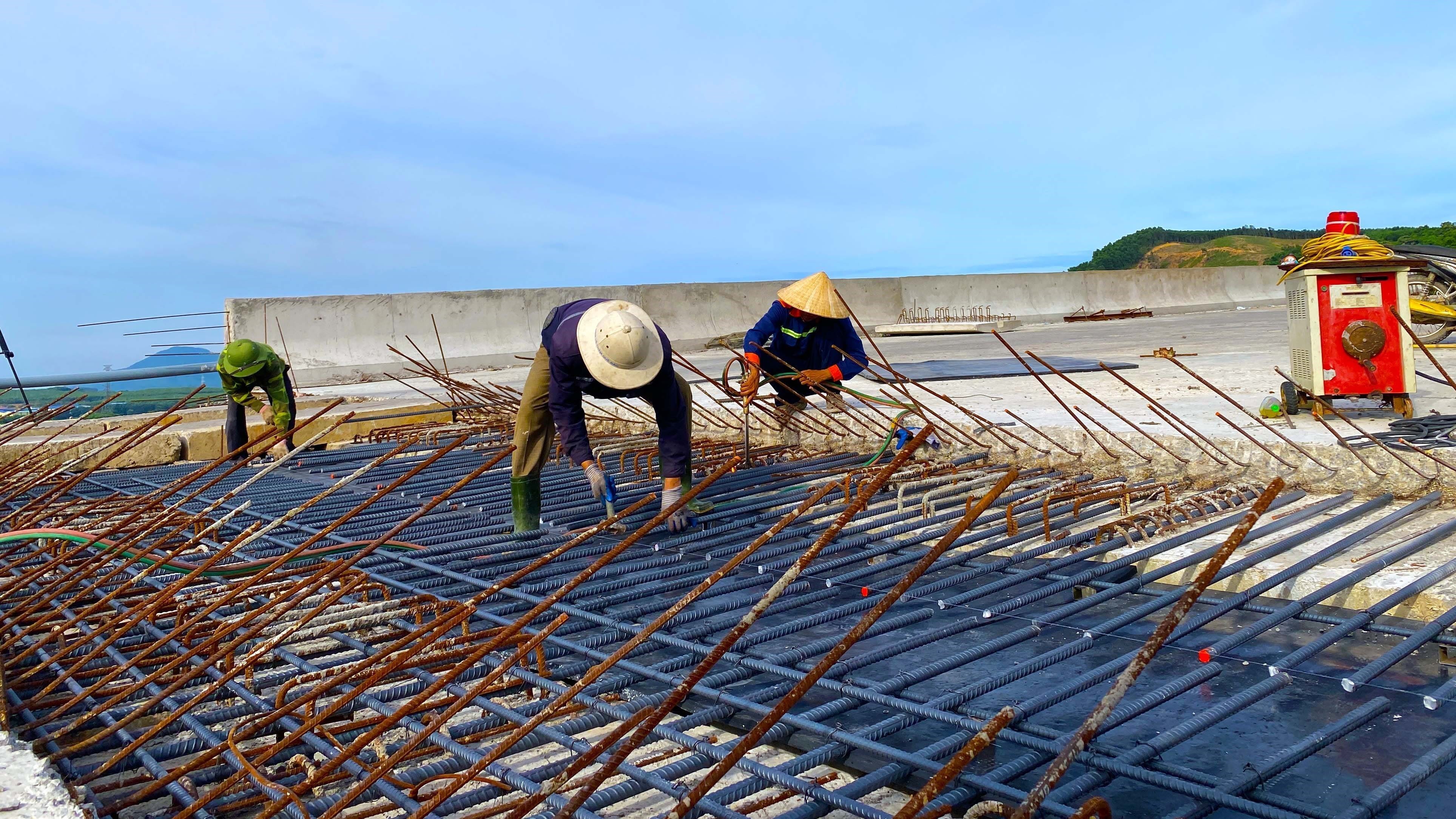 Khối lượng thi công cầu số 1 trên cao tốc Vũng Áng-Bùng hiện đạt hơn 94%.