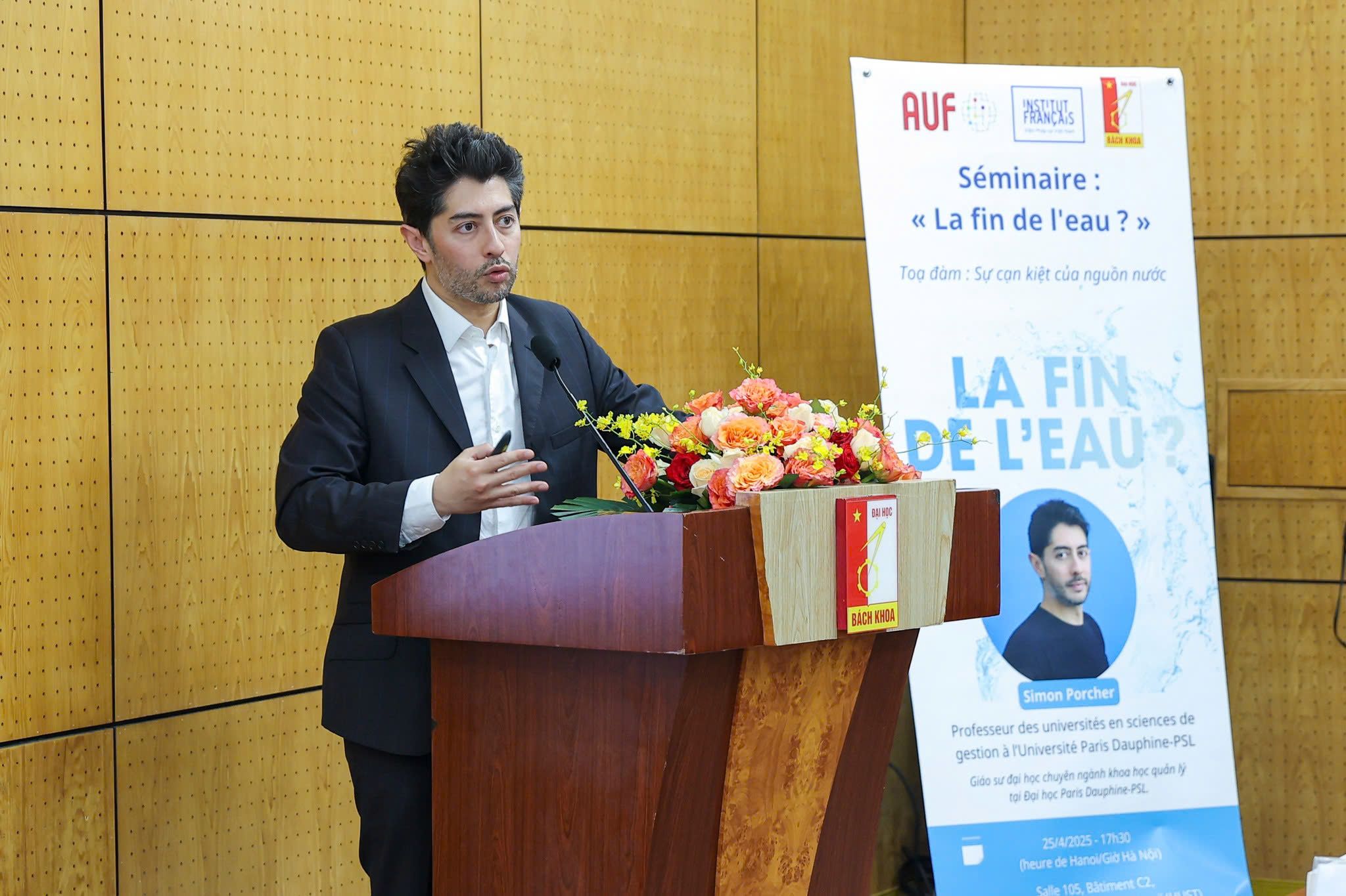 Giáo sư Simon Porcher, Pháp đã chỉ ra rằng, nước không chỉ là một thách thức môi trường, mà còn là vấn đề về quản trị, bất bình đẳng, và xung đột xã hội. Phân tích về việc “nước ngọt là tài nguyên hiếm”, Giáo sư Simon Porcher khẳng định, dù Trái Đất có 70% là nước, chỉ khoảng 2,5% là nước ngọt nhưng trong số đó, chỉ 1% thực sự dễ tiếp cận. Phần còn lại bị “khóa” trong băng hoặc nằm sâu trong lòng đất.