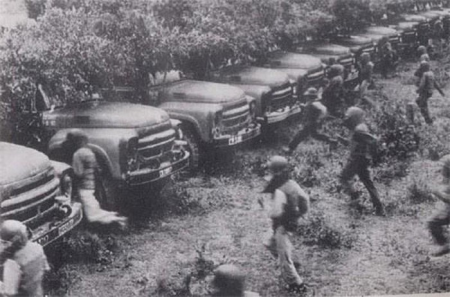 Đội hình xe ô-tô Trung đoàn 13 (Sư đoàn 571) lên đường thực hiện nhiệm vụ. (Nguồn: Tạp chí Quốc phòng toàn dân)