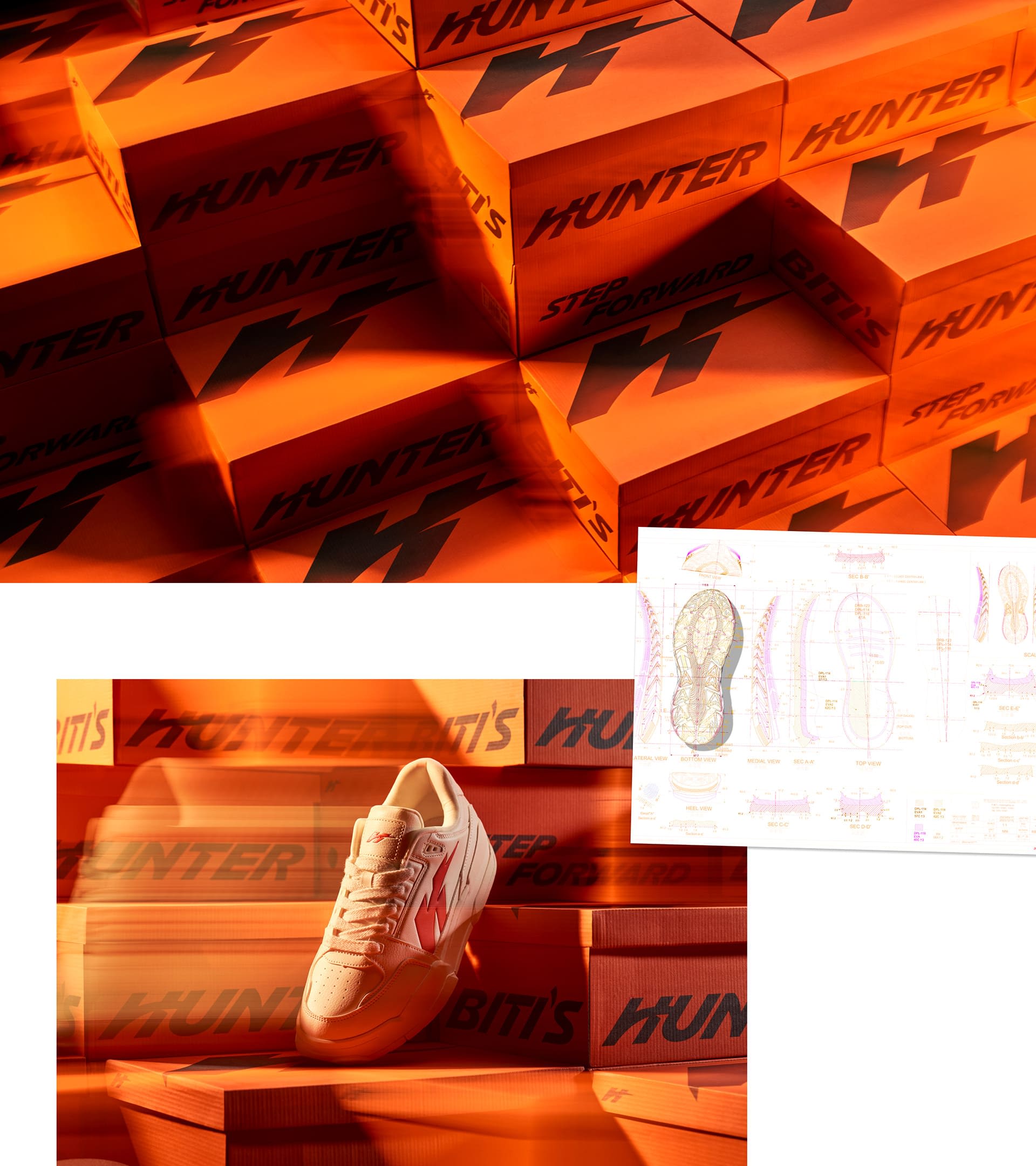 Bao bì mới lấy cảm hứng từ đôi giày Biti’s Hunter đầu tiên 2017, tạo nên tuyên ngôn mạnh mẽ với hai màu sắc chủ đạo cam và đen.