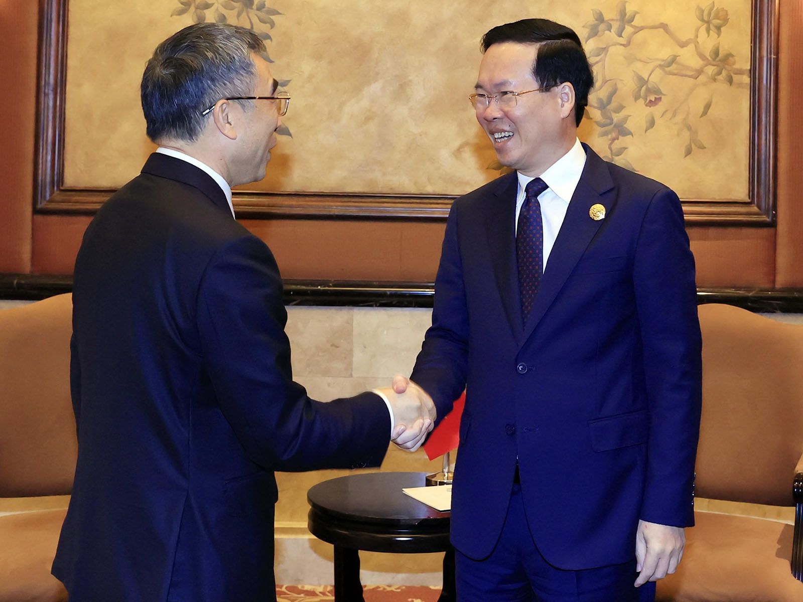 Bên lề Diễn đàn, Chủ tịch nước Võ Văn Thưởng đã tiếp Chủ tịch Tập đoàn Huawei Lương Hoa và Bí thư Đảng ủy, Chủ tịch Hội đồng quản trị Tập đoàn Trung Hưng (ZTE) Lý Tự Học. Chủ tịch nước nhấn mạnh mong muốn các doanh nghiệp, tập đoàn lớn của Trung Quốc hợp tác chặt chẽ, hiệu quả hơn với các doanh nghiệp Việt Nam, qua đó, đóng góp vào sự phát triển chung của quan hệ Việt Nam-Trung Quốc.