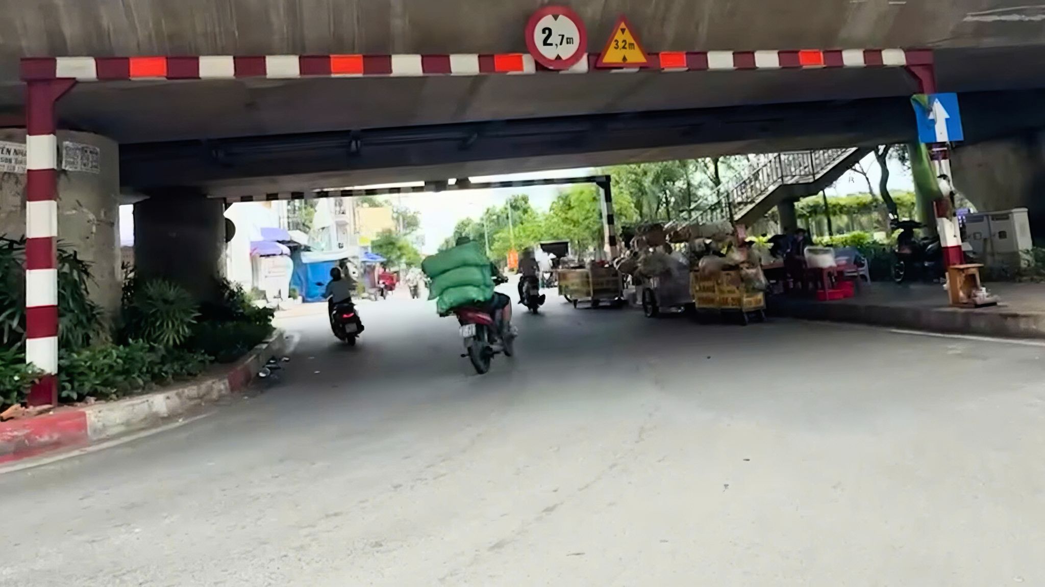 Ngay dưới chân cầu Hoàng Hoa Thám, tại điểm có xây dựng dù che mưa cho lực lượng Cảnh sát giao thông đứng điều tiết, nhưng không thấy lực lượng cảnh sát đứng là mấy. Đầu tiên, là một tủ thuốc lá được kê vào để giữ chỗ.