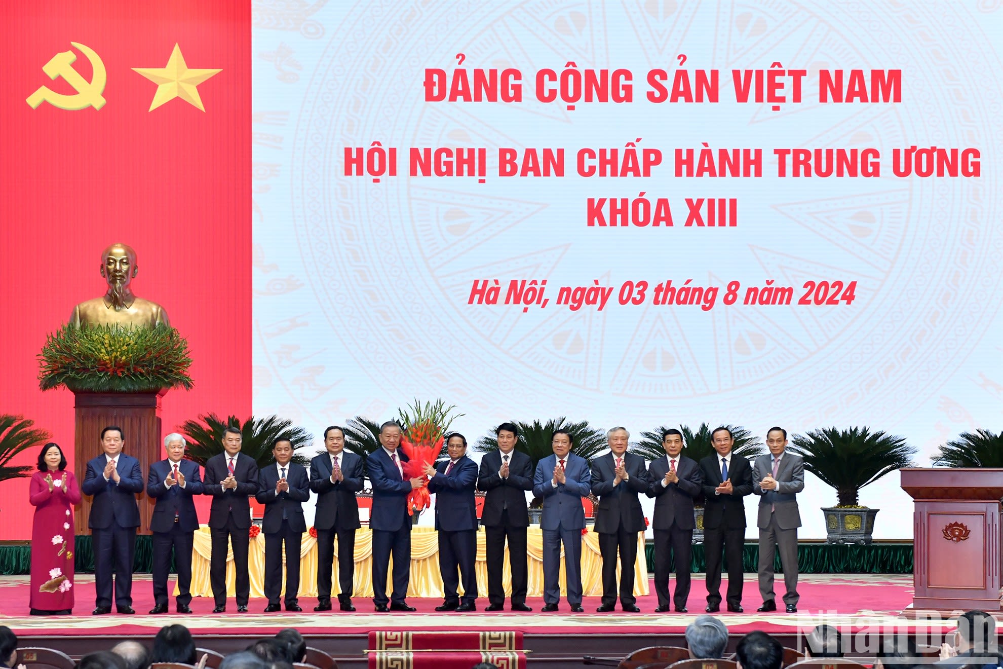 Sáng 3/8/2024, Ủy viên Bộ Chính trị, Thủ tướng Phạm Minh Chính thay mặt các đồng chí Lãnh đạo chủ chốt, Lãnh đạo cấp cao của Đảng, Nhà nước tặng hoa chúc mừng đồng chí Tô Lâm được bầu giữ chức Tổng Bí thư Ban Chấp hành Trung ương Đảng Cộng sản Việt Nam khóa XIII.